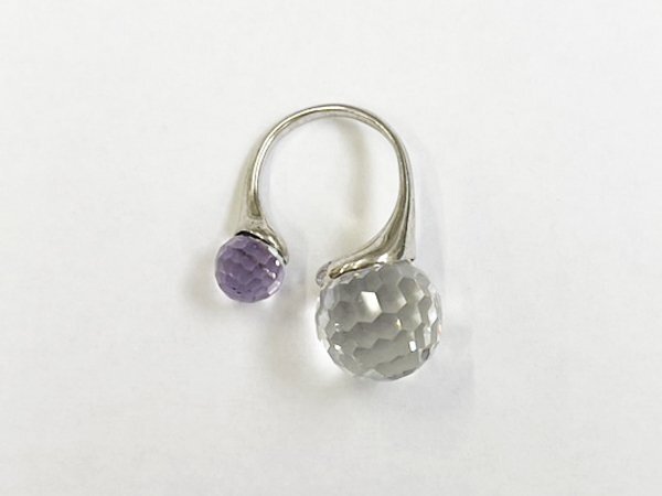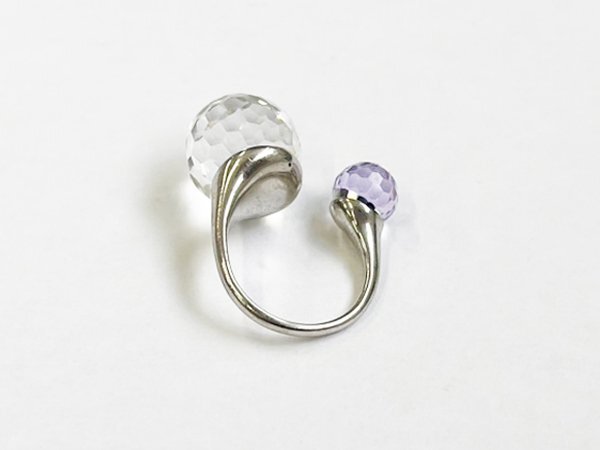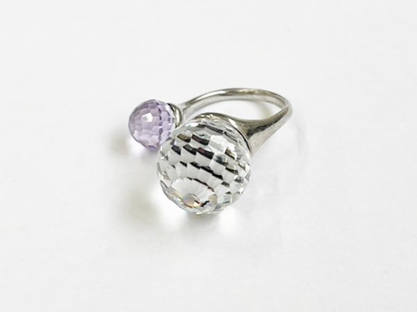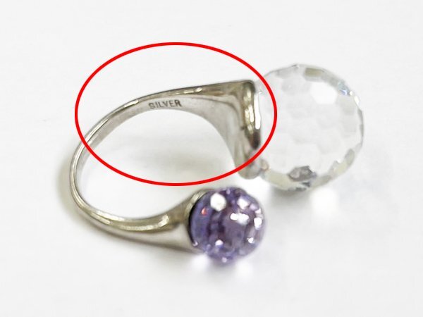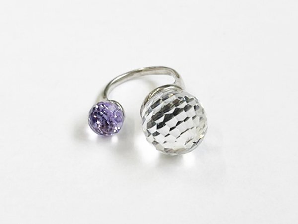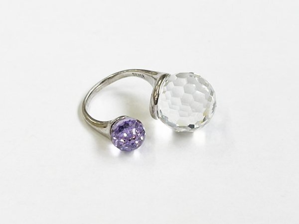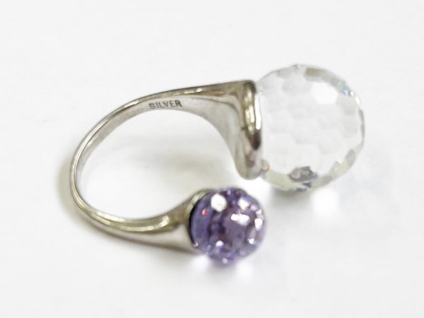 指輪 リング SILVER 銀 カラー ストーン ミラーボールカット デザイン ジュエリー/シルバー×パープル×クリア/10号/訳有/1円スタート/AY