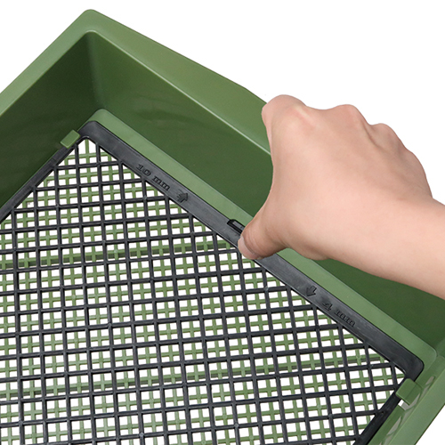 ・中の網をスライドさせるだけで、簡単に目の大きさを変更できます。