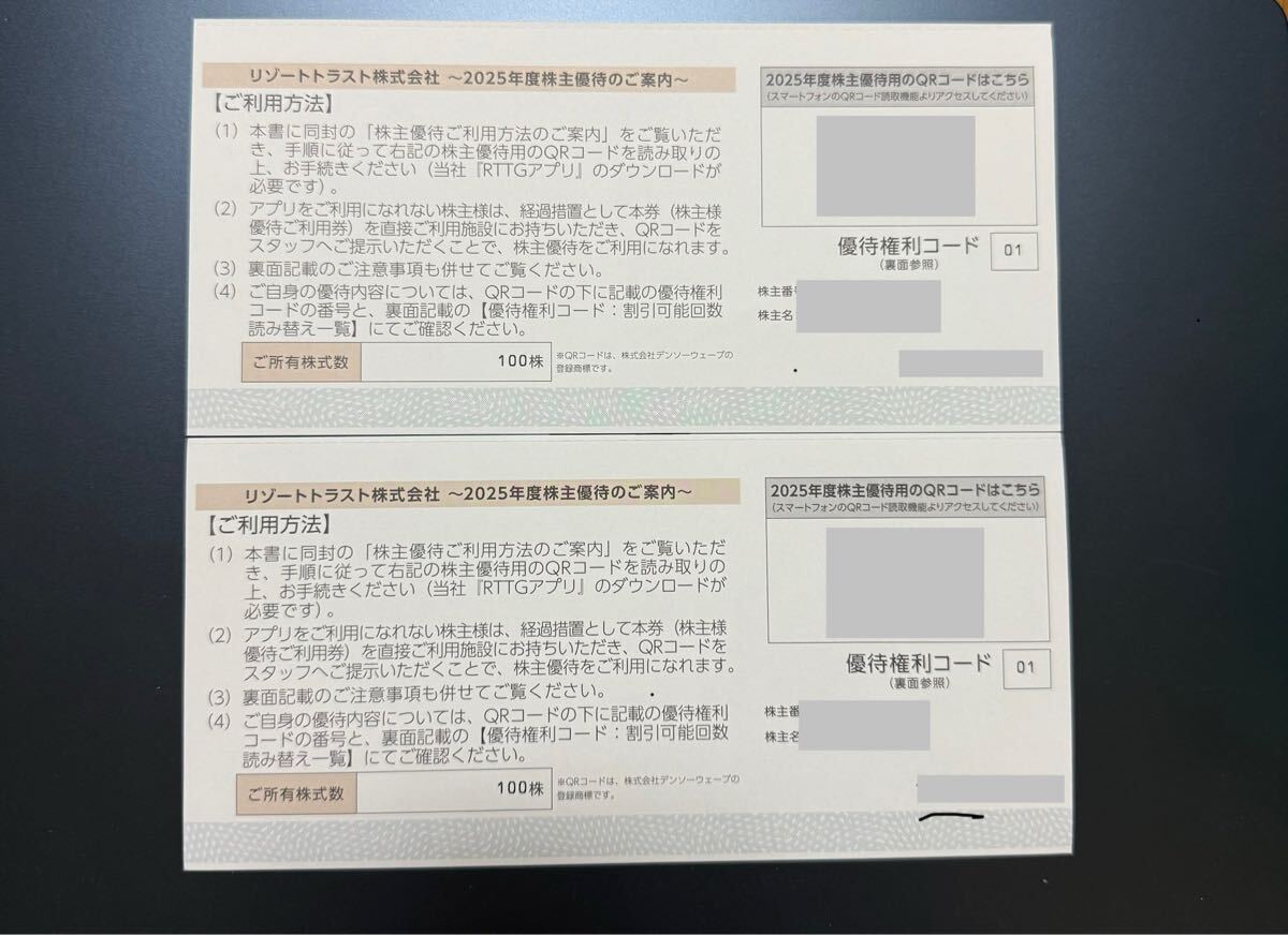 リゾートトラスト株主優待券 3割引券×2