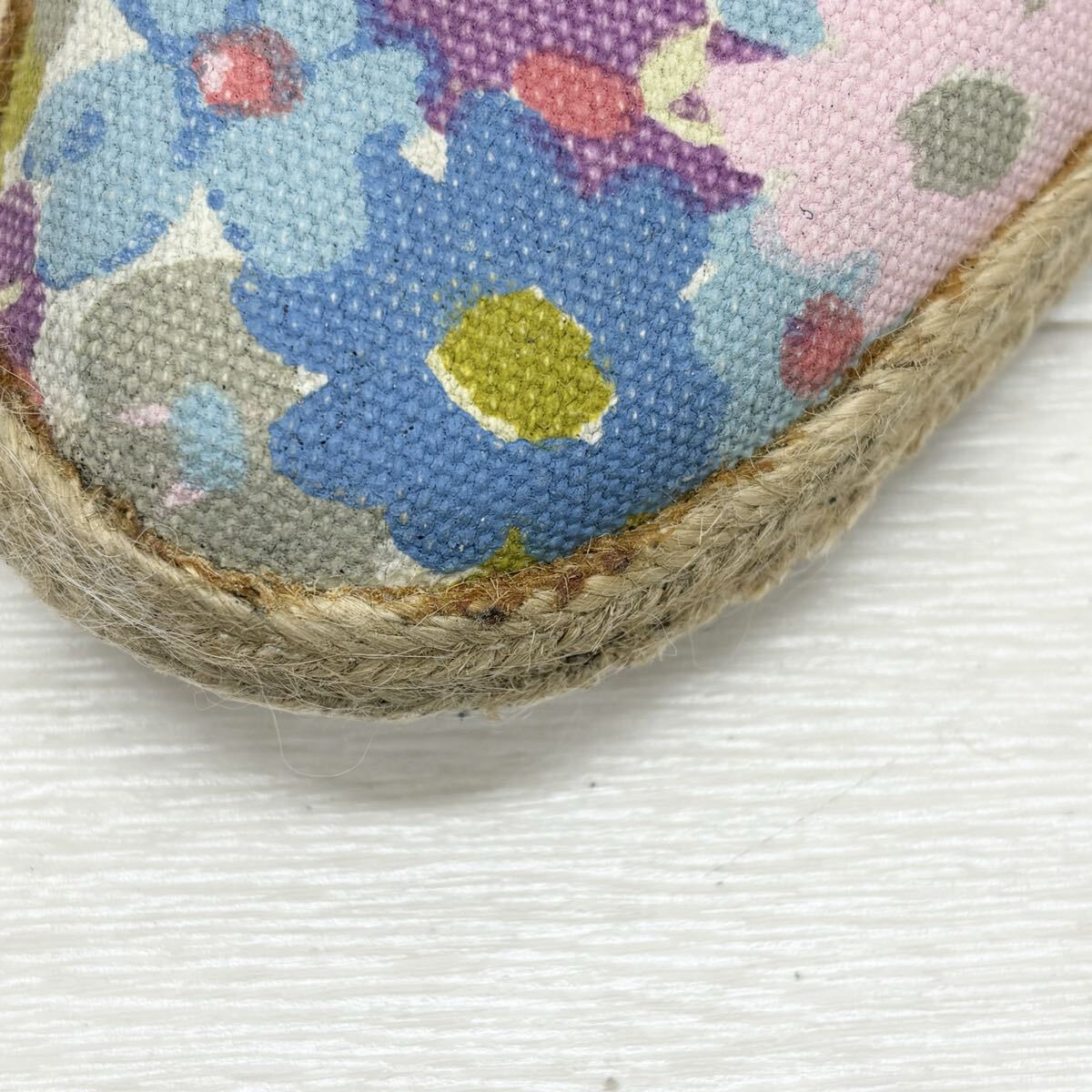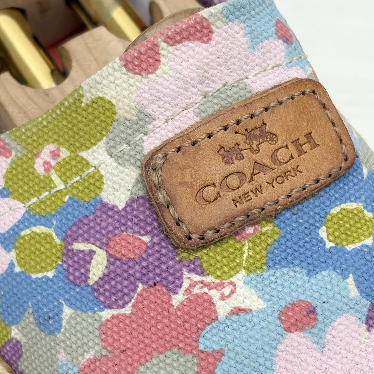 接着剤のような汚れ、ブランドロゴレザー部分に染み汚れあり。