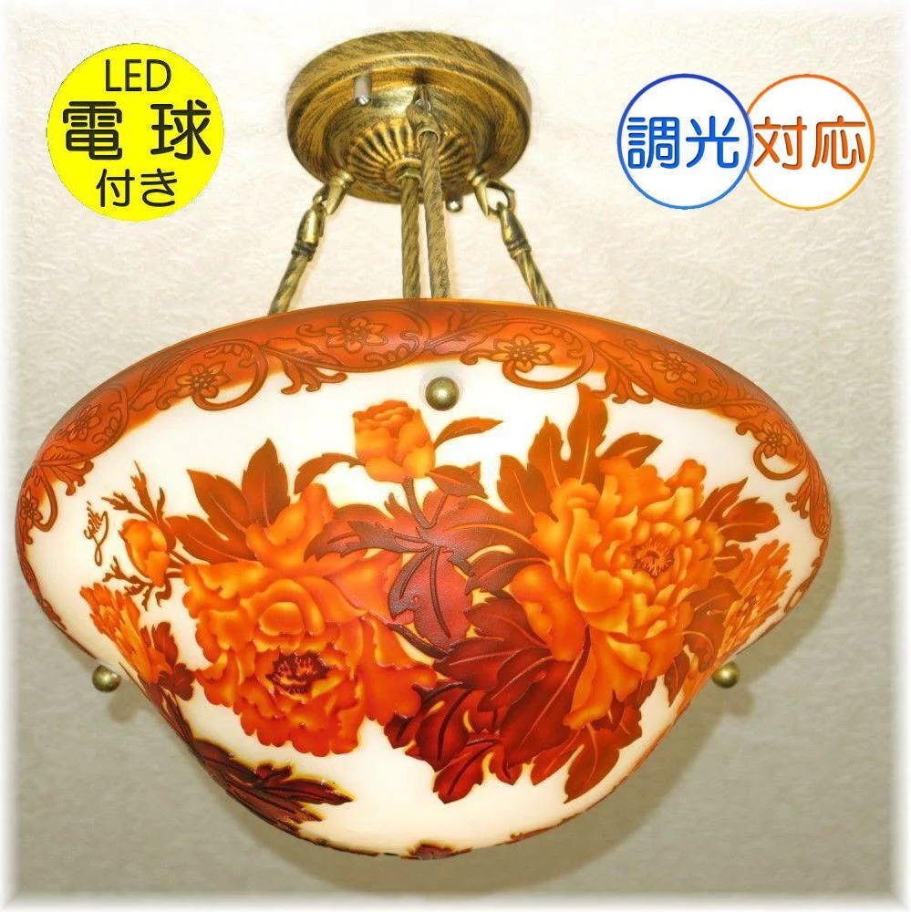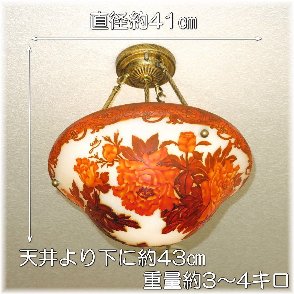 | 商品説明 | ![]() 【送料無料!】☆豪華ガラス工芸☆新品 アールヌーボー 様式 ガレ風 ガラス工芸アンティークシャンデリア ☆広角LED4灯(\6000-相当)をお付けいたしまして驚きのプライス! エミール・ガレの名はアール・ヌーボーの代表的な担い手として一躍有名になり 彼の様々な技法を駆使して生み出される神秘的なガラス工芸品の数々は美術的に高く評価されました それらの技法は熟練した職人の手により今日に受け継がれ ガレ風の作品として、すべて手作りで作り続けられています。 今回のシャンデリアはそのなかの被せガラス技法で作られた作品です 被せガラスとは何種類もの色ガラスを重ね着させ、その後に表面から彫刻を施し深く彫る事により下の色が現れ変化にとんだ模様を出すことができます 重ね具合や厚さにより同じガラスでもまったく別の雰囲気になります 実物は写真で見るより数段すばらしく インテリアとしての色調と電気をつけたときのうっとりするような美しい色調の両方をご堪能いただけます この機会に高級感あふれるガラス工芸シャンデリアはいかがですか、お部屋のムードが一変します。 大手家具メーカー・専門量販店等で数十万で販売されているシャンデリアと同等の商品です シャンデリア本体は調光にも対応しており調光スイッチでお好みの明るさに調整可能です♪ ※調光が必要の場合調光対応LED(1個¥200-アップ)が必要です サイズ 直径41センチ 天井より下に約43センチ 重量約3~4キロです 取り付けに関しましては引掛けシーリングに対応しております 付属電球・・・口金E26広角LED暖色4個(明るさ40ワット消費電力4ワット¥6000-相当) 白色LEDご希望の場合落札後お申しつけ下さい 商品画像は暖色LEDを装着し撮影しております ![]() |