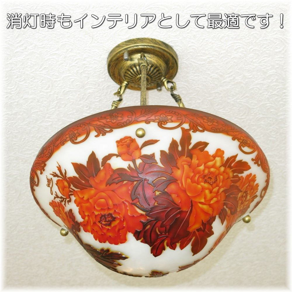 | 注意事項 | 新品・未使用品での販売ですが製造上での多少の小傷等はご了承願います 職人による手作りでの作品のため画像と色目の濃淡等若干の違が生じますがご了承願います 重量に関しましても手作りでの作品でガラスの厚み等で若干の違いが生じますがご了承願います 取り付けに関しましては引掛けシーリングに対応しております 店頭販売もしており重複した場合キャンセルさせていただく場合がございますがあらかじめご了承願います。 |