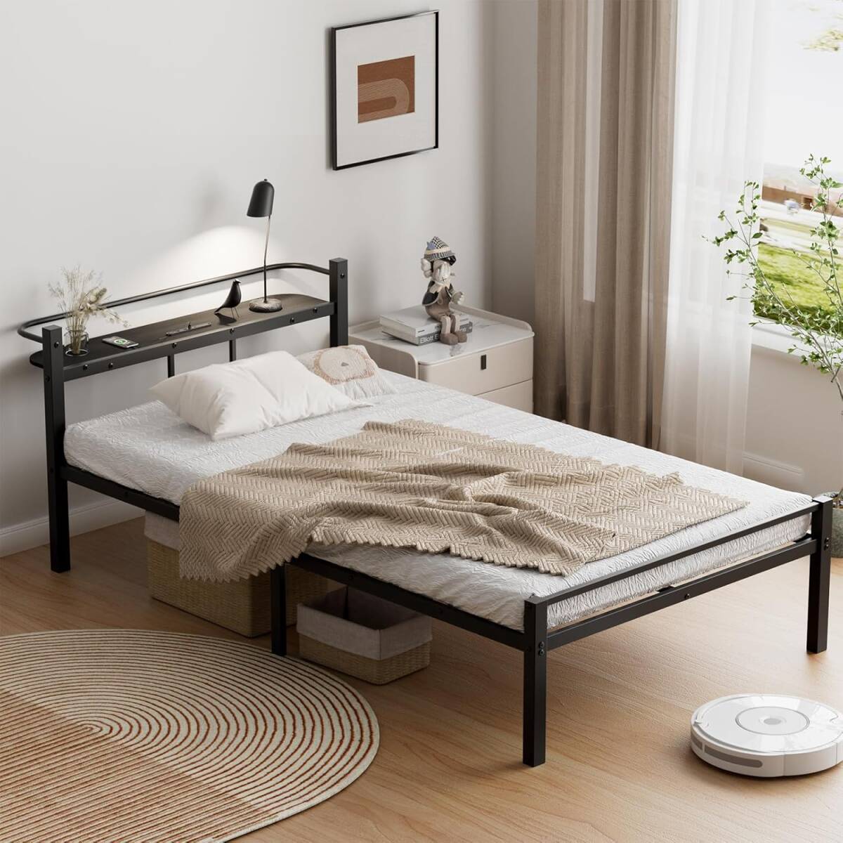 【サイズ】幅98×長225さ×高さ76cm、ベッド下高さ31cm、コードの長さ:180cm【フレーム材質】スチール(鋼製+粉体塗装)、MDFボード 【耐荷重】約300kg【重量】約18.6kg 【梱包サイズ】13×35×108cm