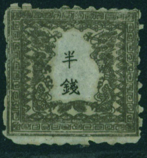 商品説明: 竜半銭 2版 pos.11 印面変種 左竜尾一部欠け 未使用 目打甘い 淡いシミ JPS 5,