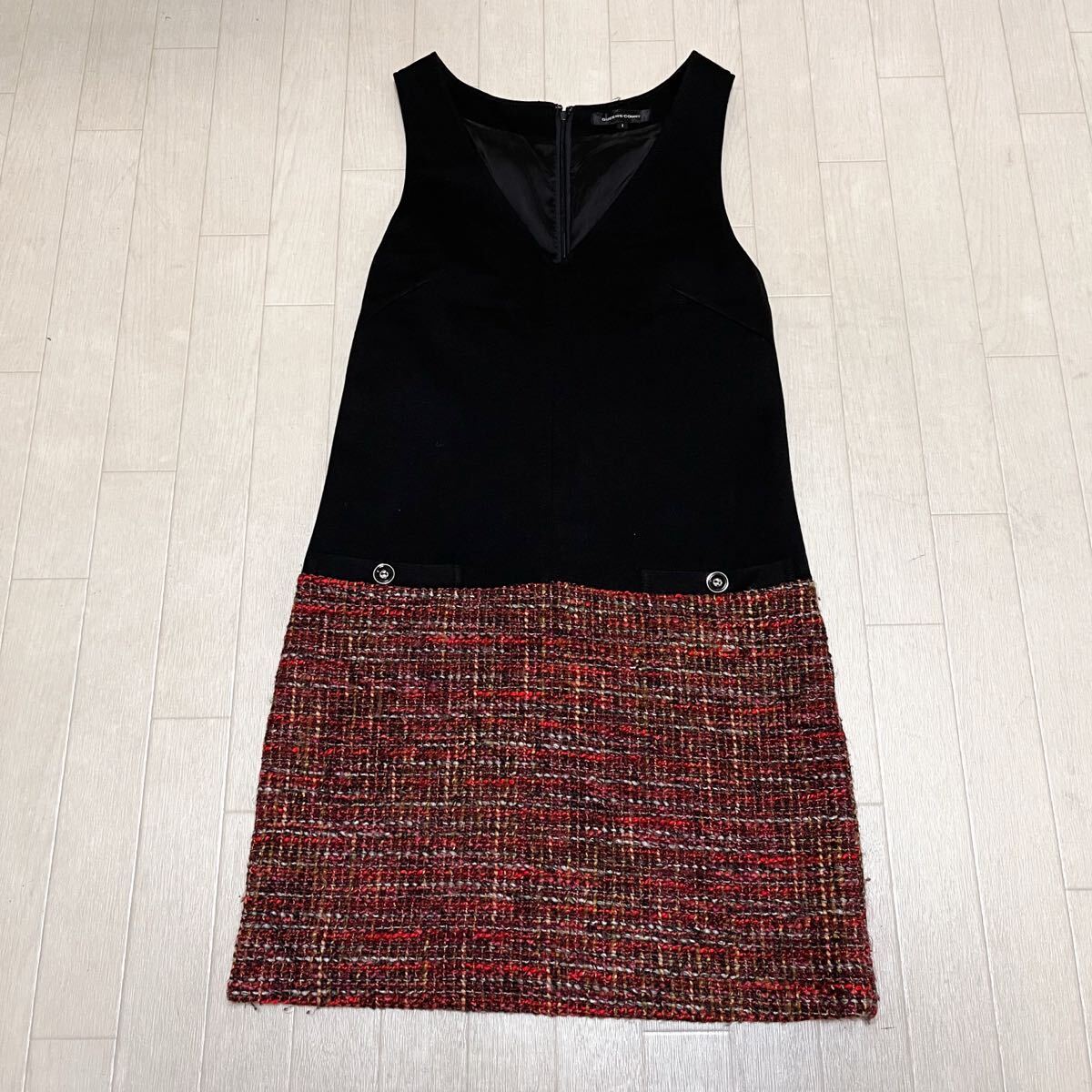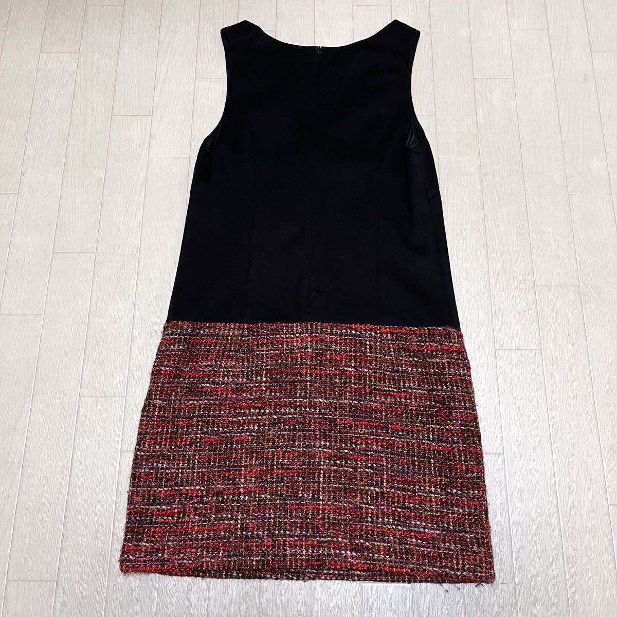 和851★ QUEENS COURT クイーンズコート ノースリーブワンピース 切替 1 ブラック レッド レディース