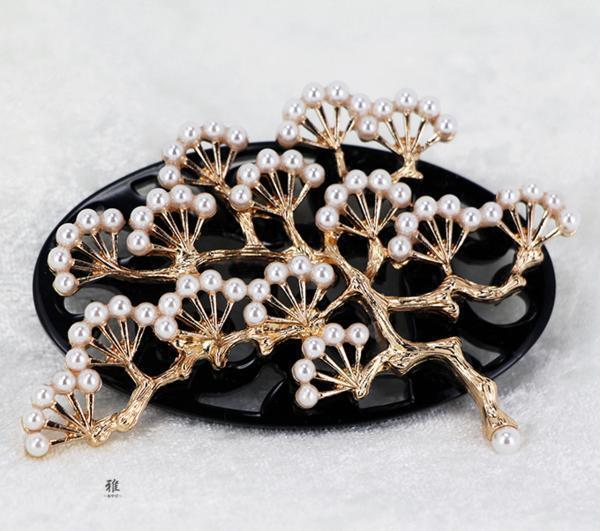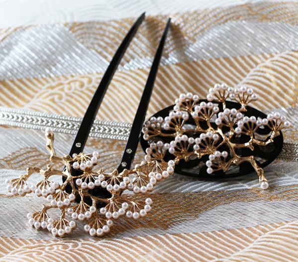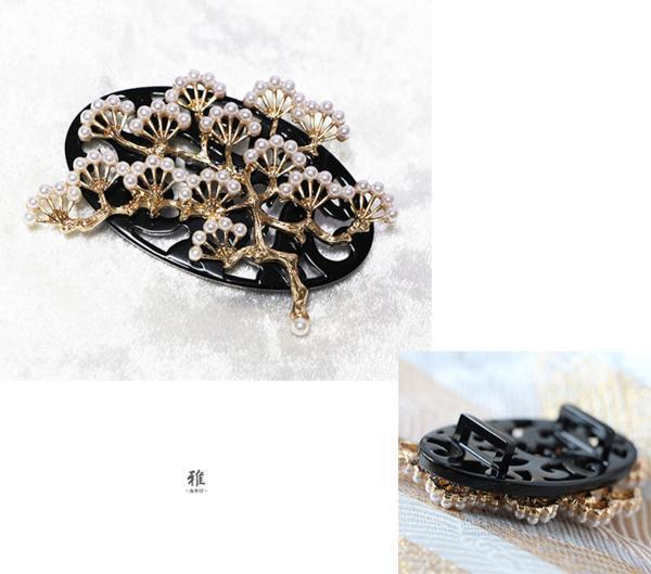フェイクパールをたっぷり使用した日本的な中に夢のある素敵な”松”の帯留めをお作り致しました。(*´_`*)