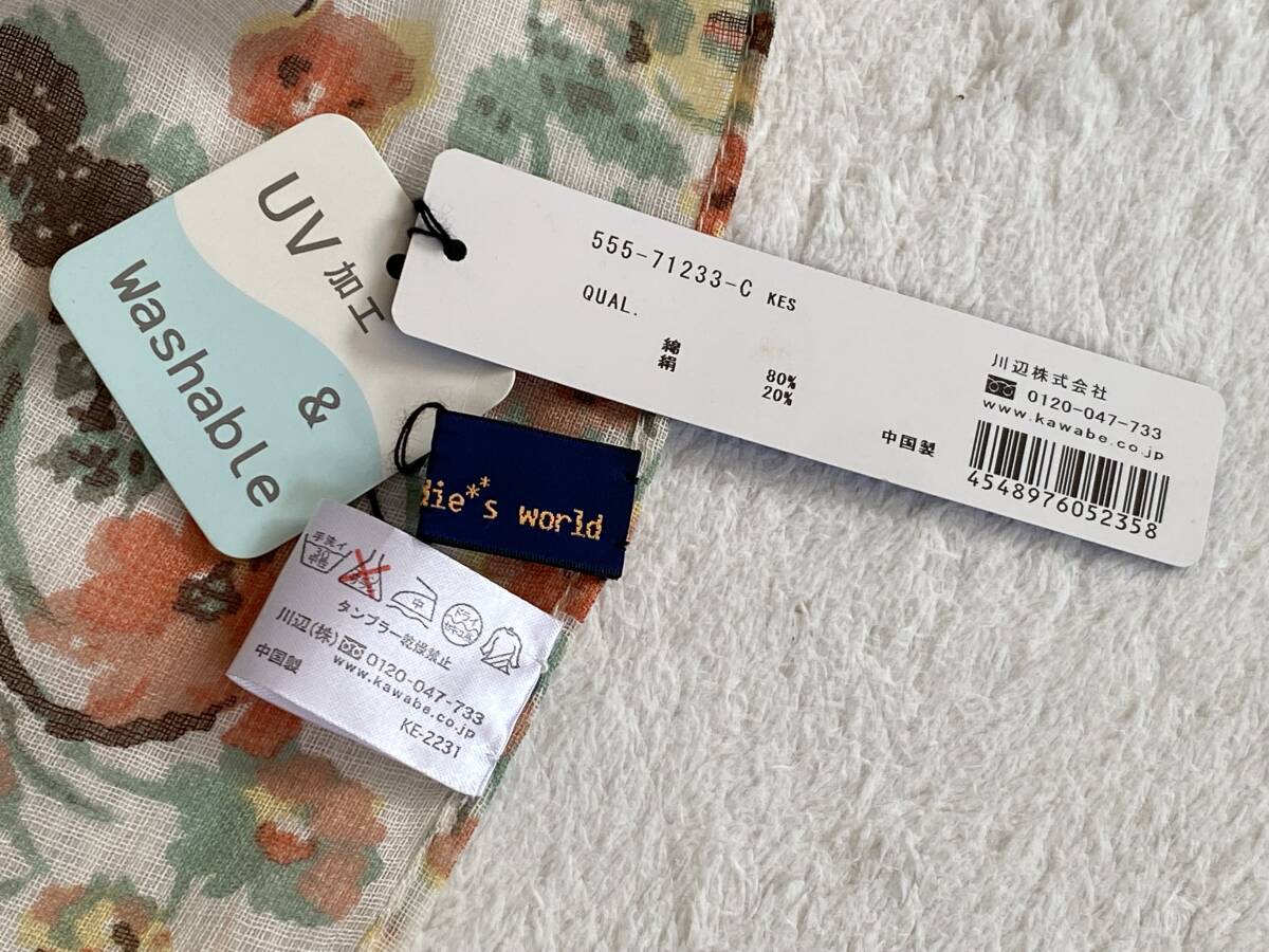 タグ付新品【indie*s world】川辺製造 コットン×シルク ストール UV加工&ウォッシャブル 落ち着いた秋にピッタリな色味です ★サイズ 約50×188cm(房込み) ★品質 綿80% 絹20% |
