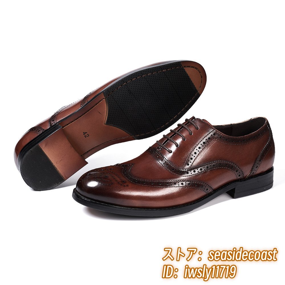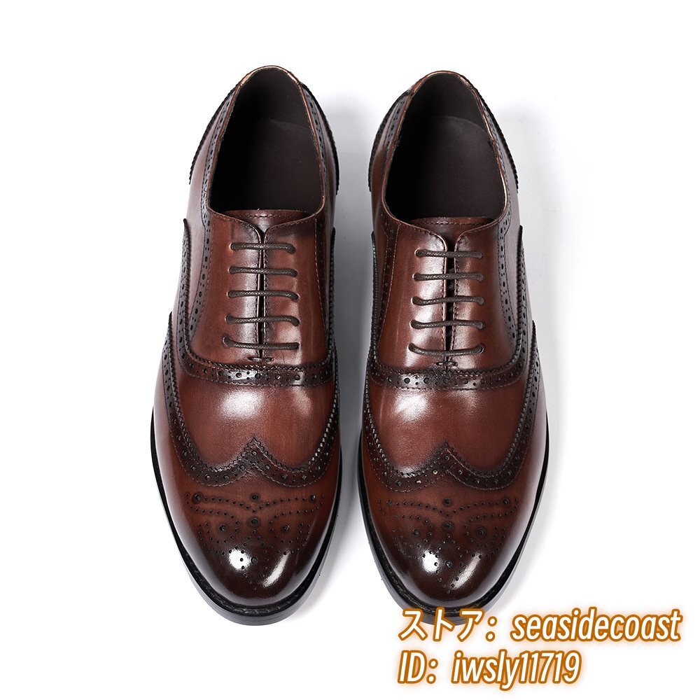 超希少■メンズ レザーシューズ 本革 スリッポン 最高級 職人手作り 彫り ビジネスシューズ 革靴 紳士靴 牛革 フォーマル ブラウン 28.0cm