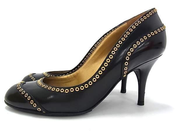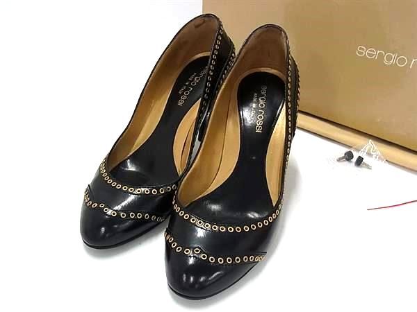 ■美品■ Sergio rossi セルジオロッシ レザー ヒハイール パンプス サイズ 34 (約21.0cm) 靴 シューズ ブラック系 DK0341
