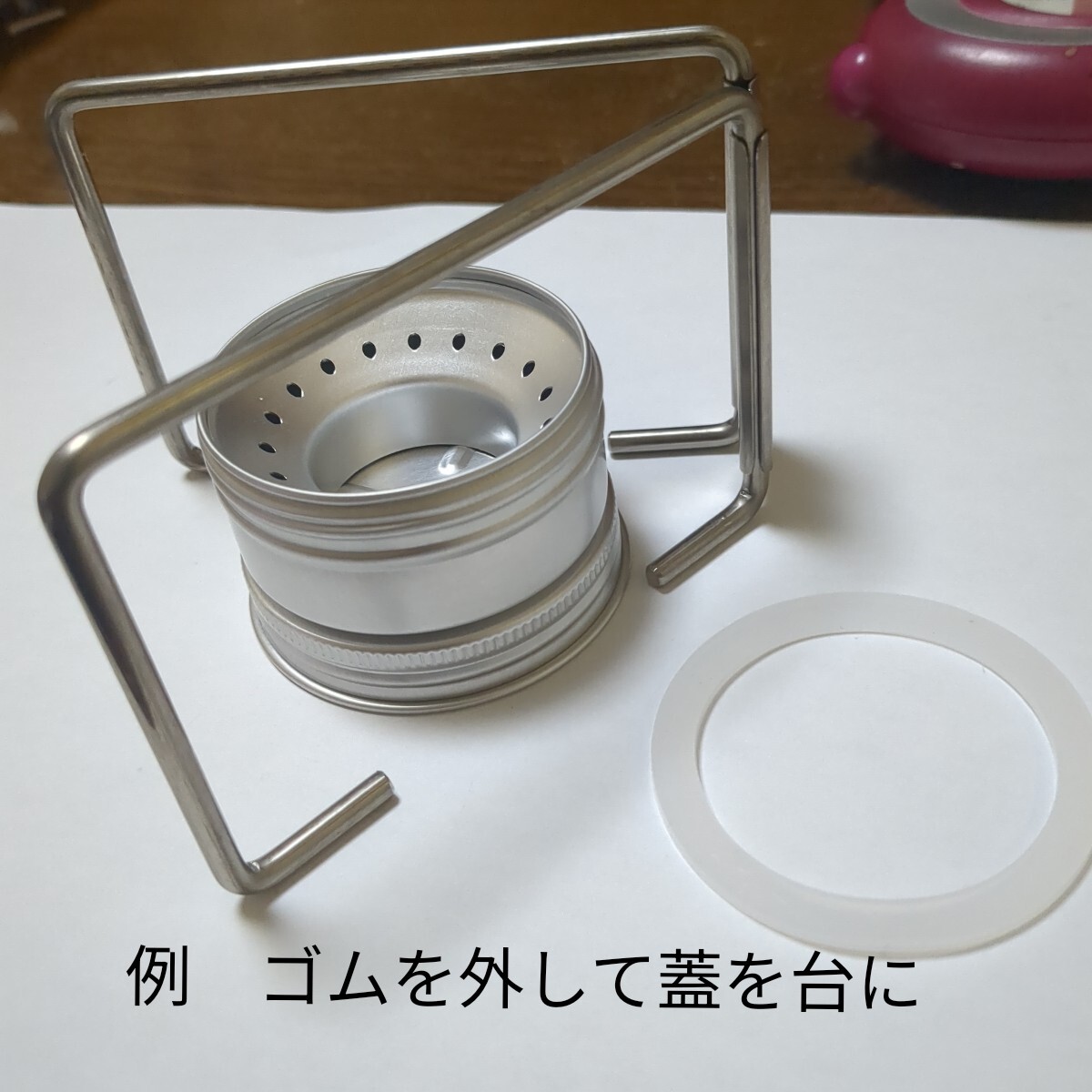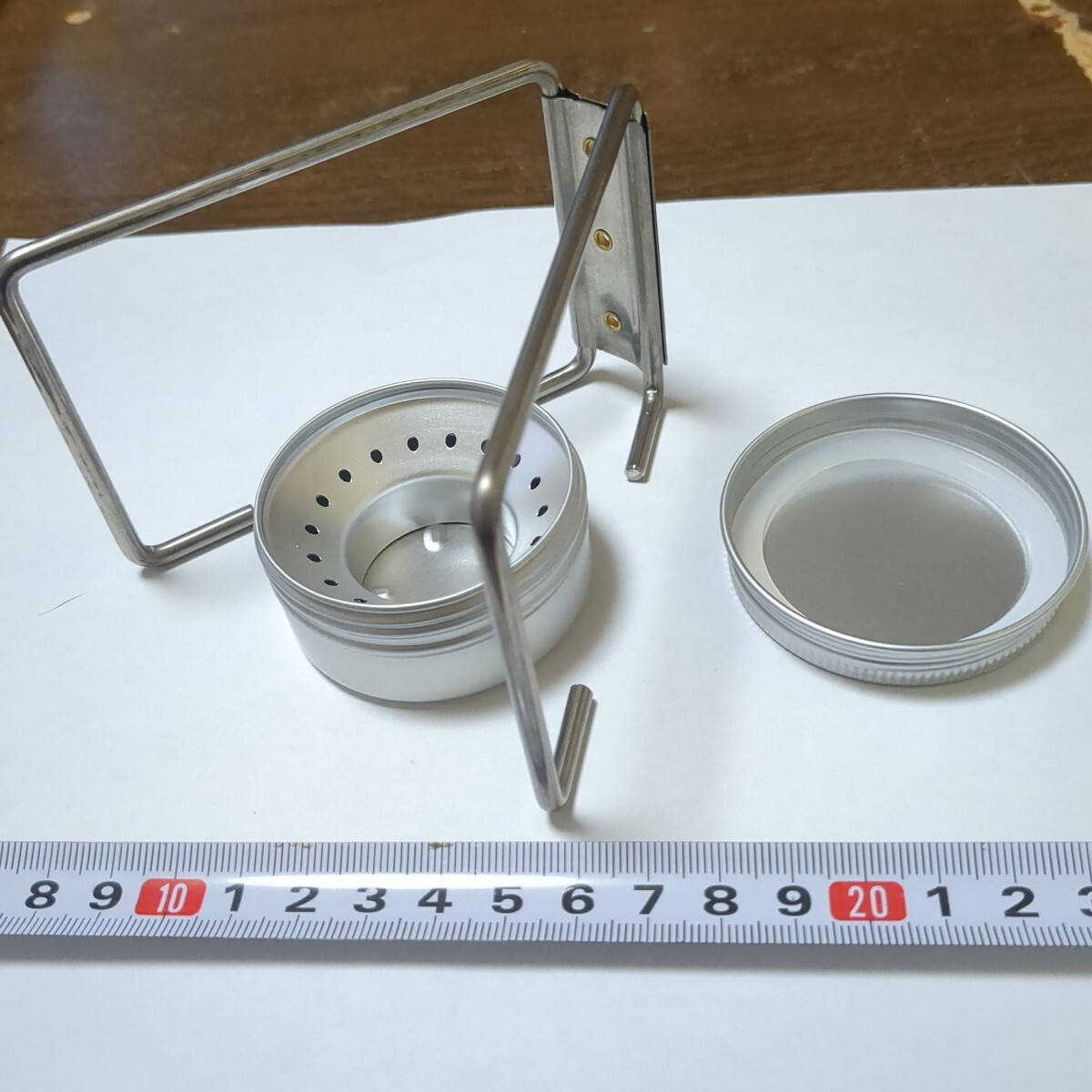 ノーブランド新品です。アルミ製アルコールストーブキャップは漏れ防止ゴム付&折りたたみ式スチール製五徳