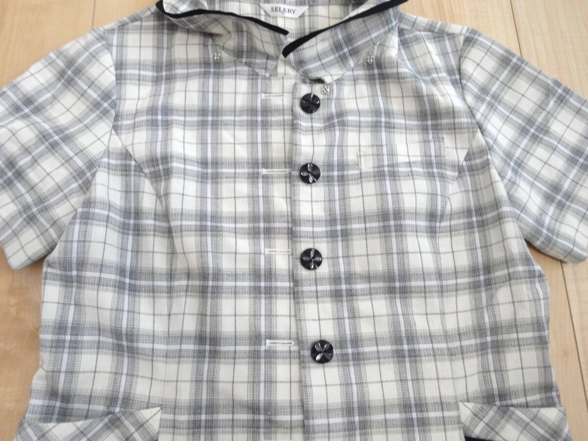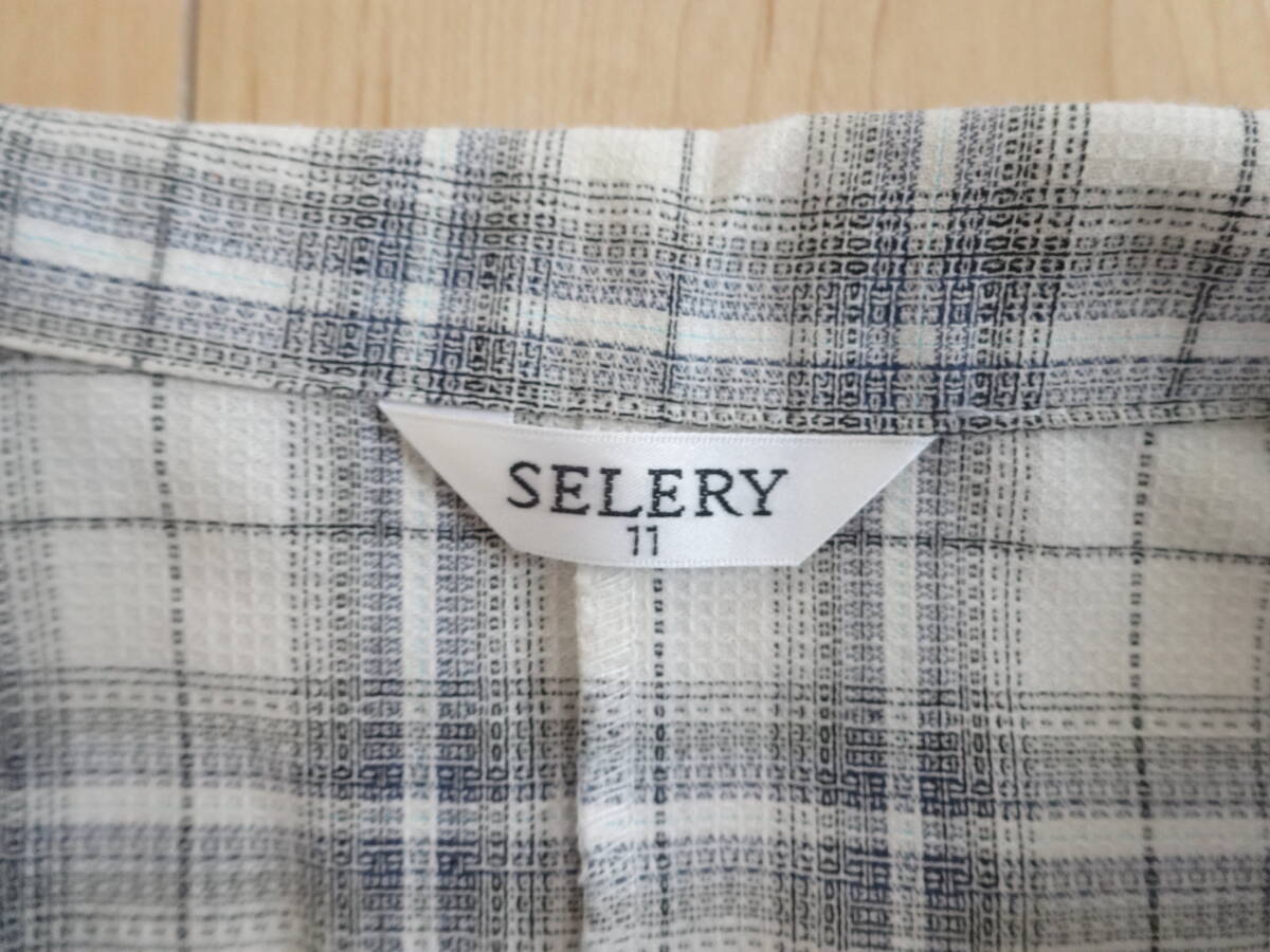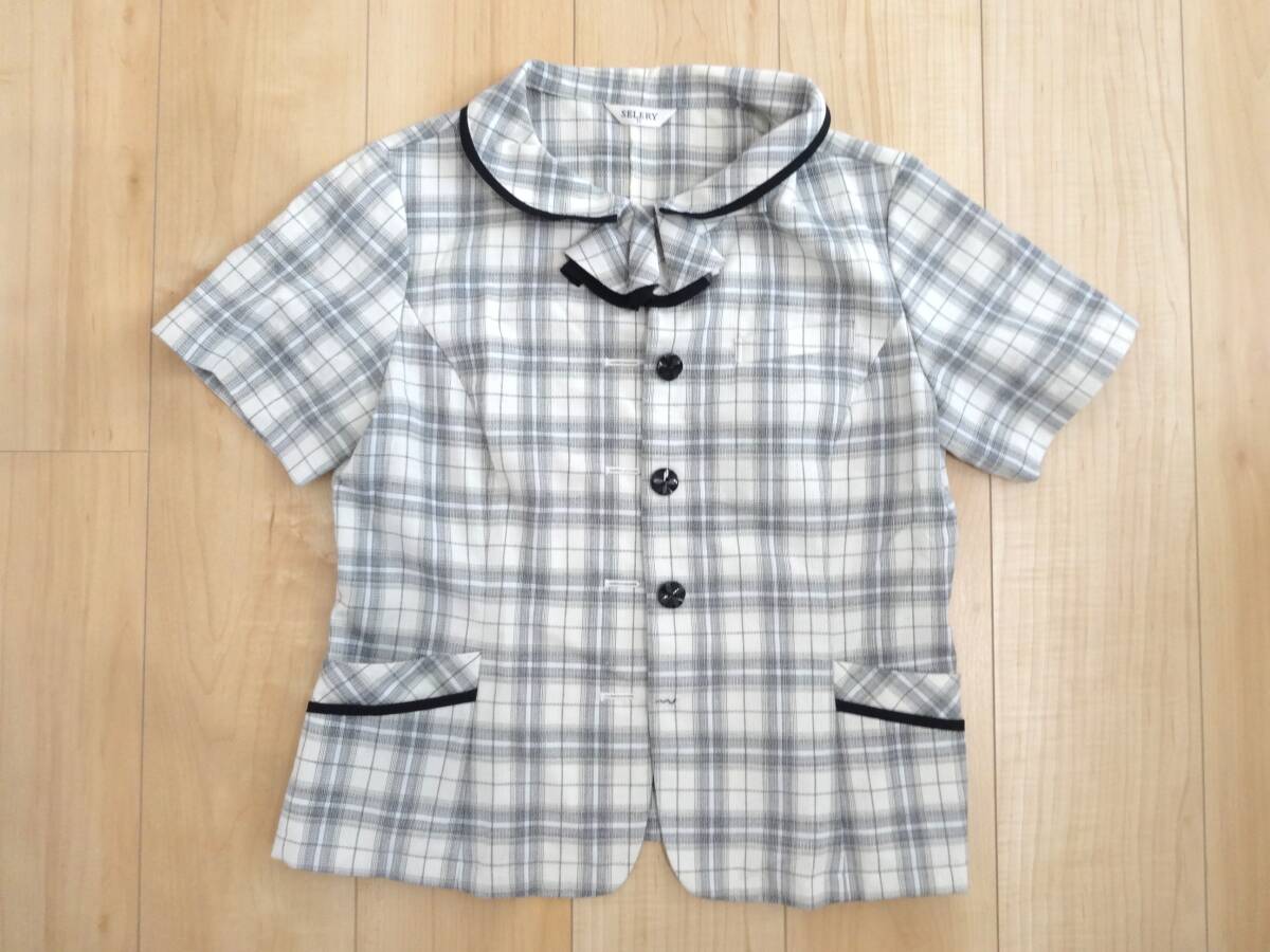 (現状品) SELERY セロリー オーバーブラウス サイズ11 レディース チェック ホワイト / グレー系 春夏用 フォーマル 事務 OL 制服 #C25