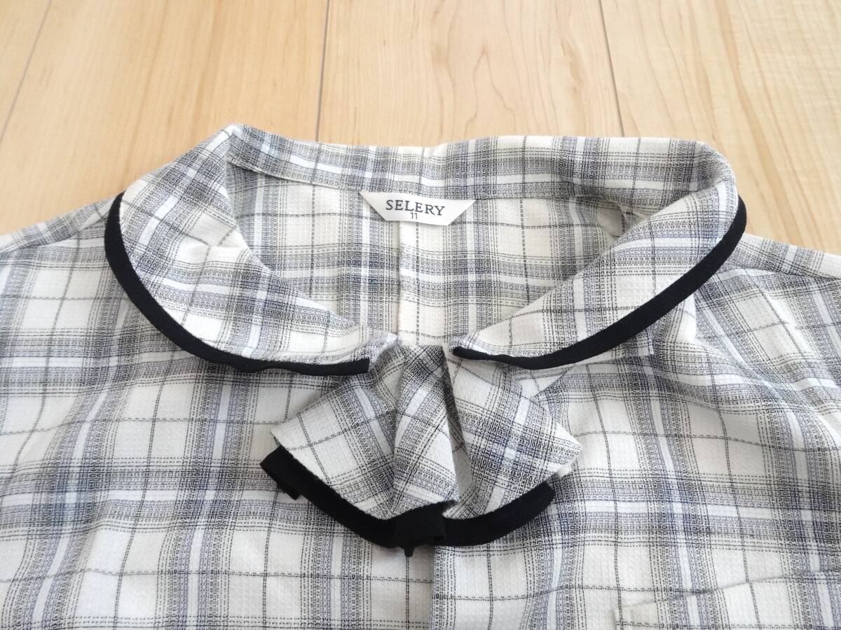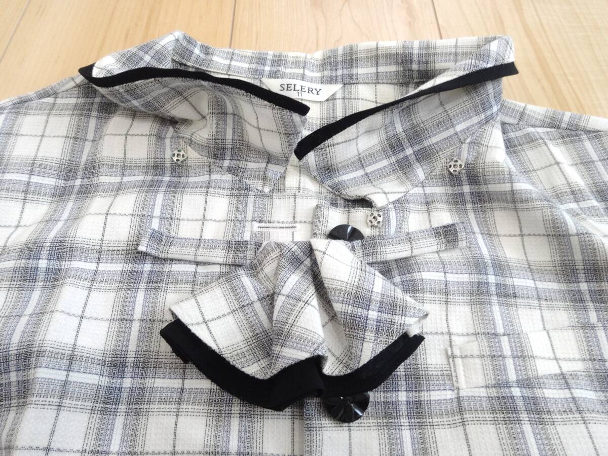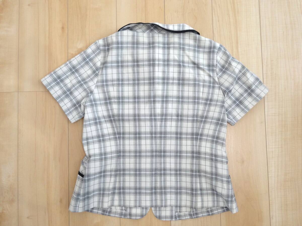 (現状品) SELERY セロリー オーバーブラウス サイズ11 レディース チェック ホワイト / グレー系 春夏用 フォーマル 事務 OL 制服 #C25