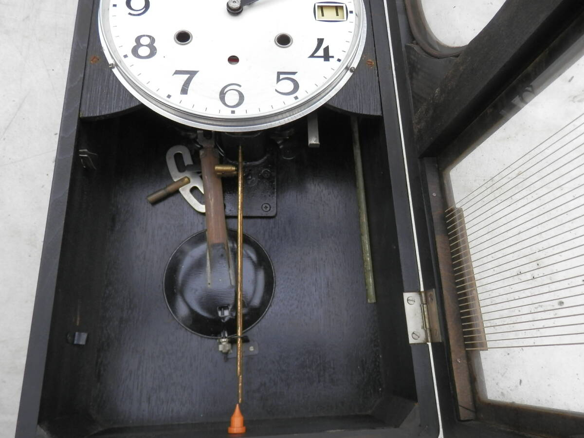 明治 meiji 30日巻手巻き式柱時計 30DAY 宮型 振り子時計 ボンボン時計 掛時計 昭和レトロ 昭和中期  (26)*0925