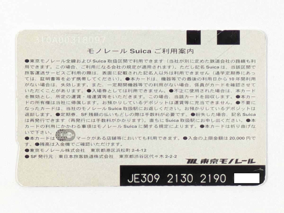 モノレールSuica 無記名 残高なし/デポジットのみ 出場処理済み 東京モノレール Suica スイカ 交通系ICカード 【キズあり】