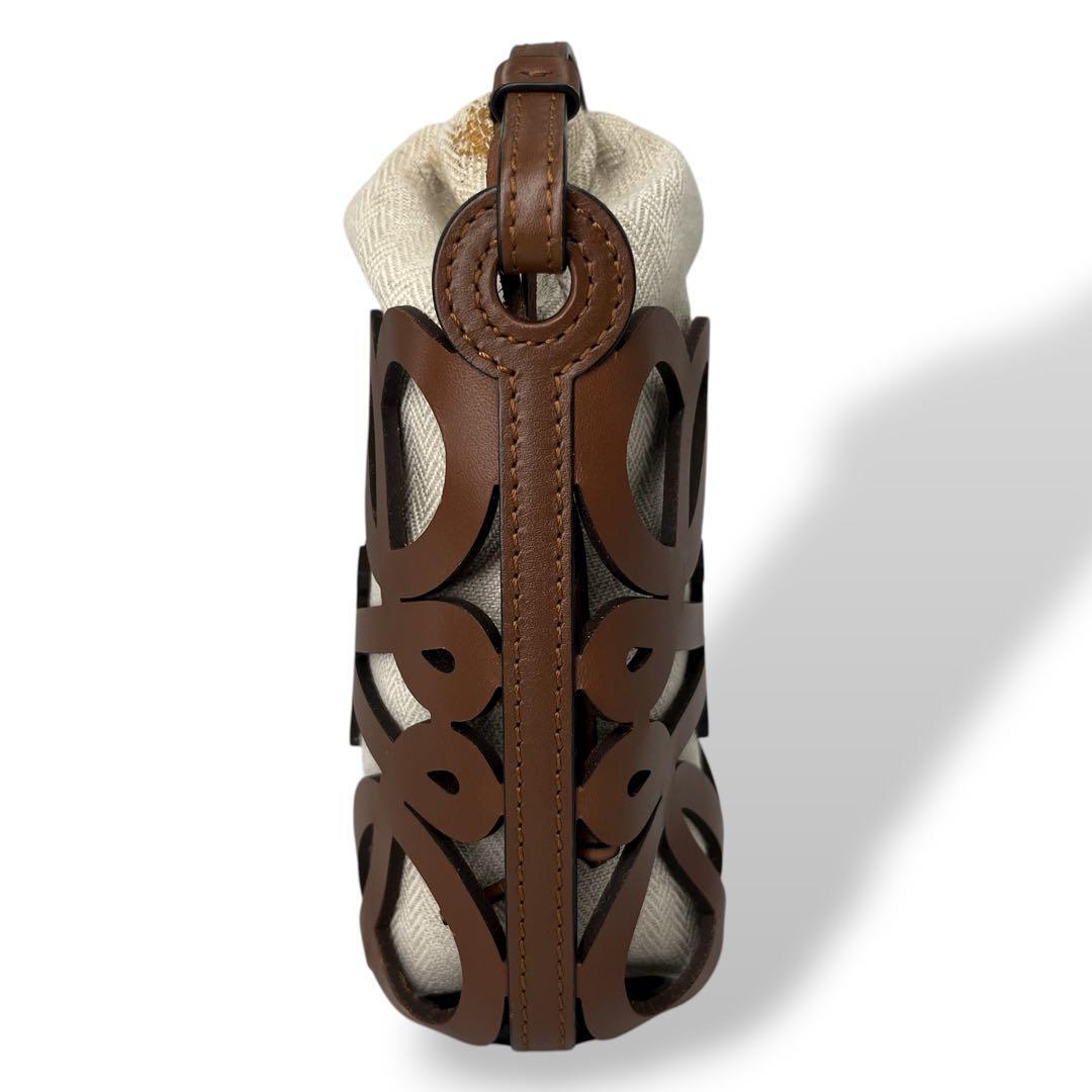LOEWE レザー ブラウン 白 アイボリー カットアウト スマホショルダー ポシェット ミニ