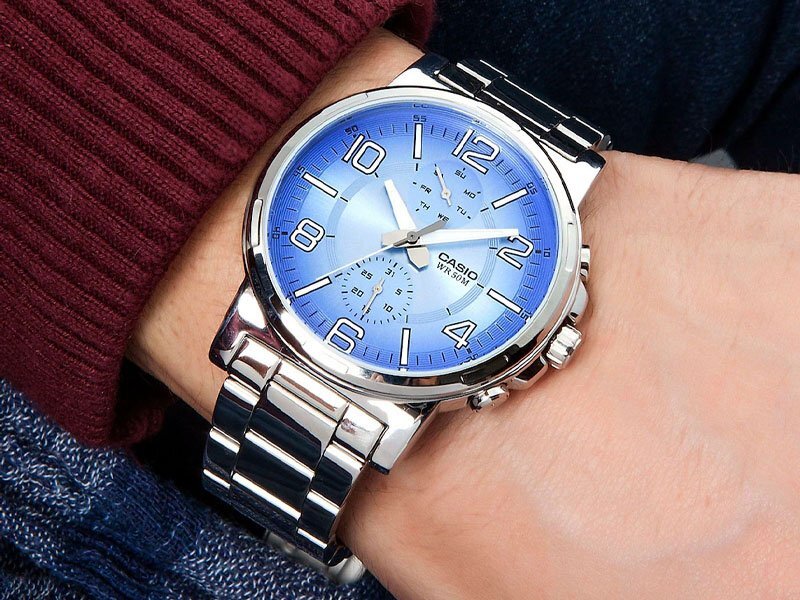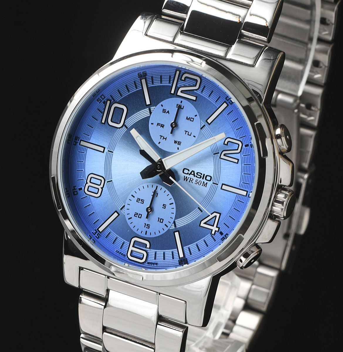 逆輸入カシオ 入手不可能 新品 美しく磨き上げられた鏡面加工ステンレス 鮮やかなスカイブルー 50m防水 腕時計 未使用 CASIO メンズ