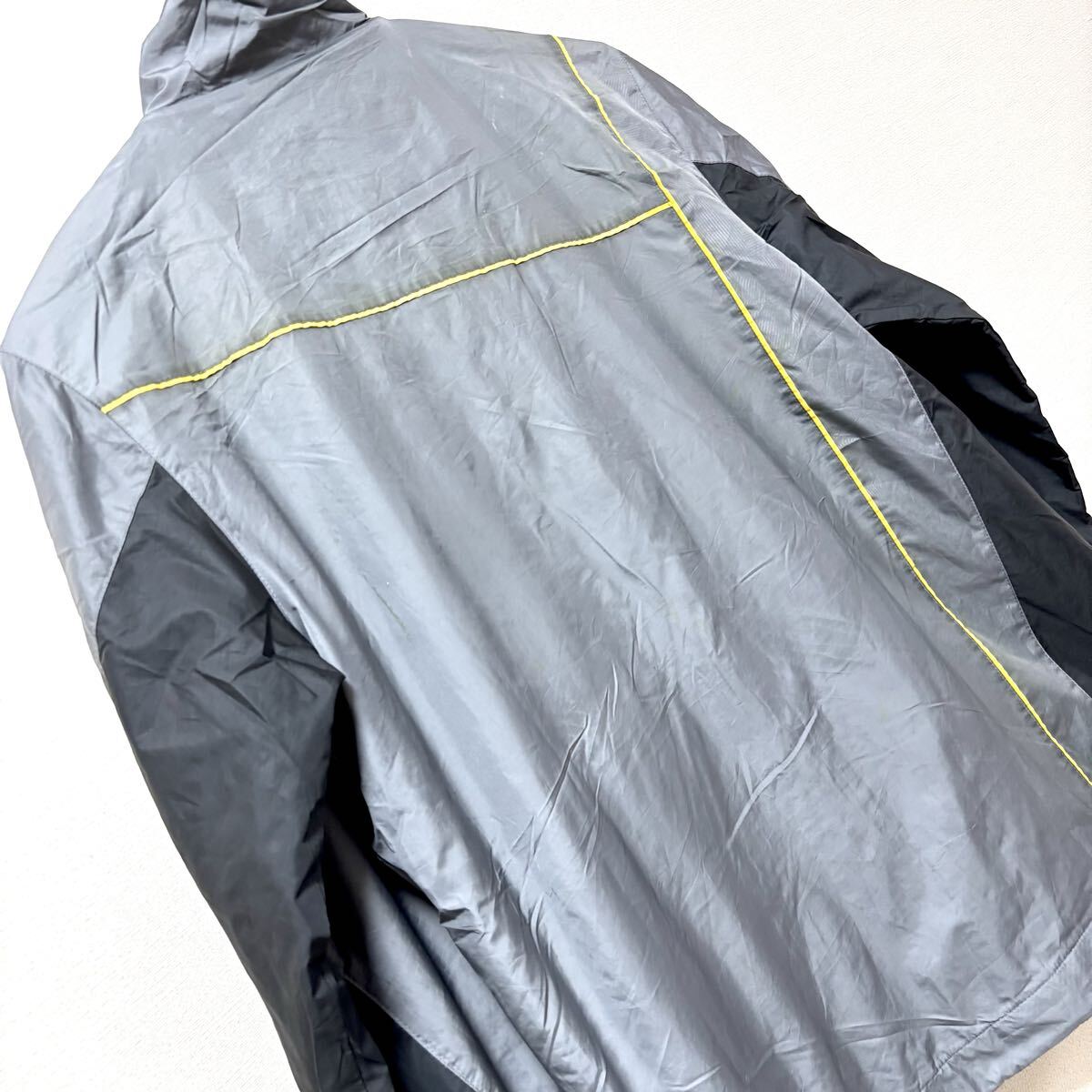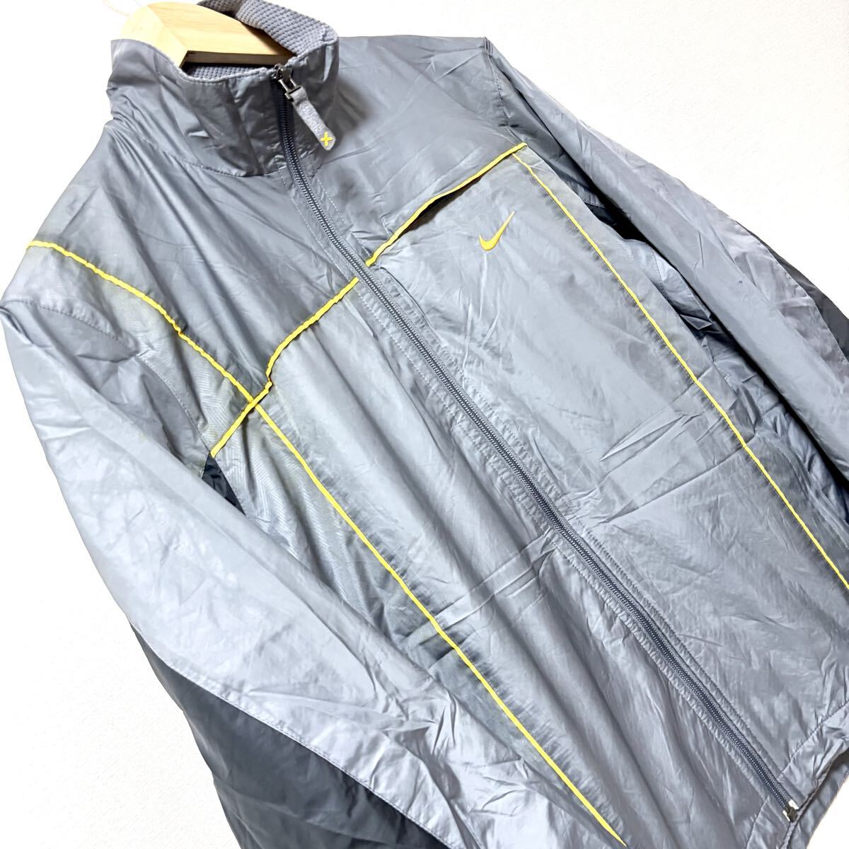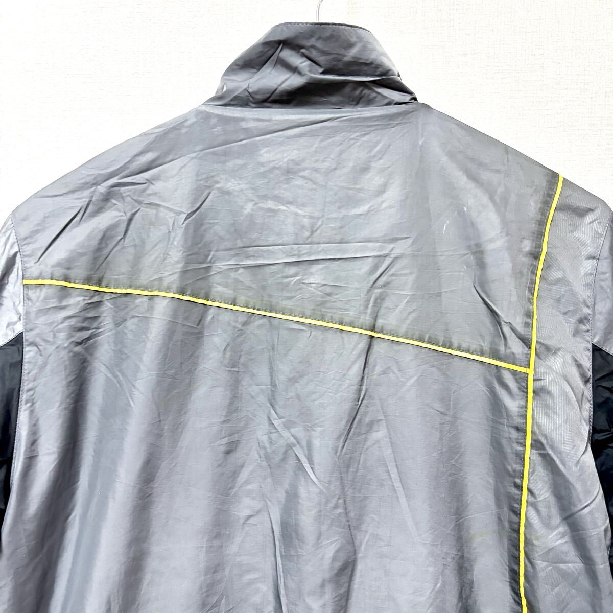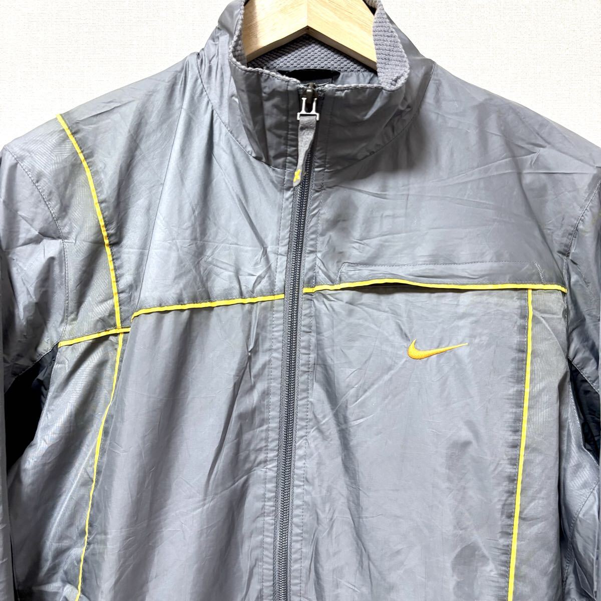 NIKEのウィンドブレーカーです。保温性が高く、肌寒い時期のランニングにぴったりなアウターになります!グレーにアシンメトリーなイエローのラインが映えるかっこいいデザインです◎肩などに少しシミがありますが、あまり目立つほどではないのでまだまだお使いいただけると思います^ ^