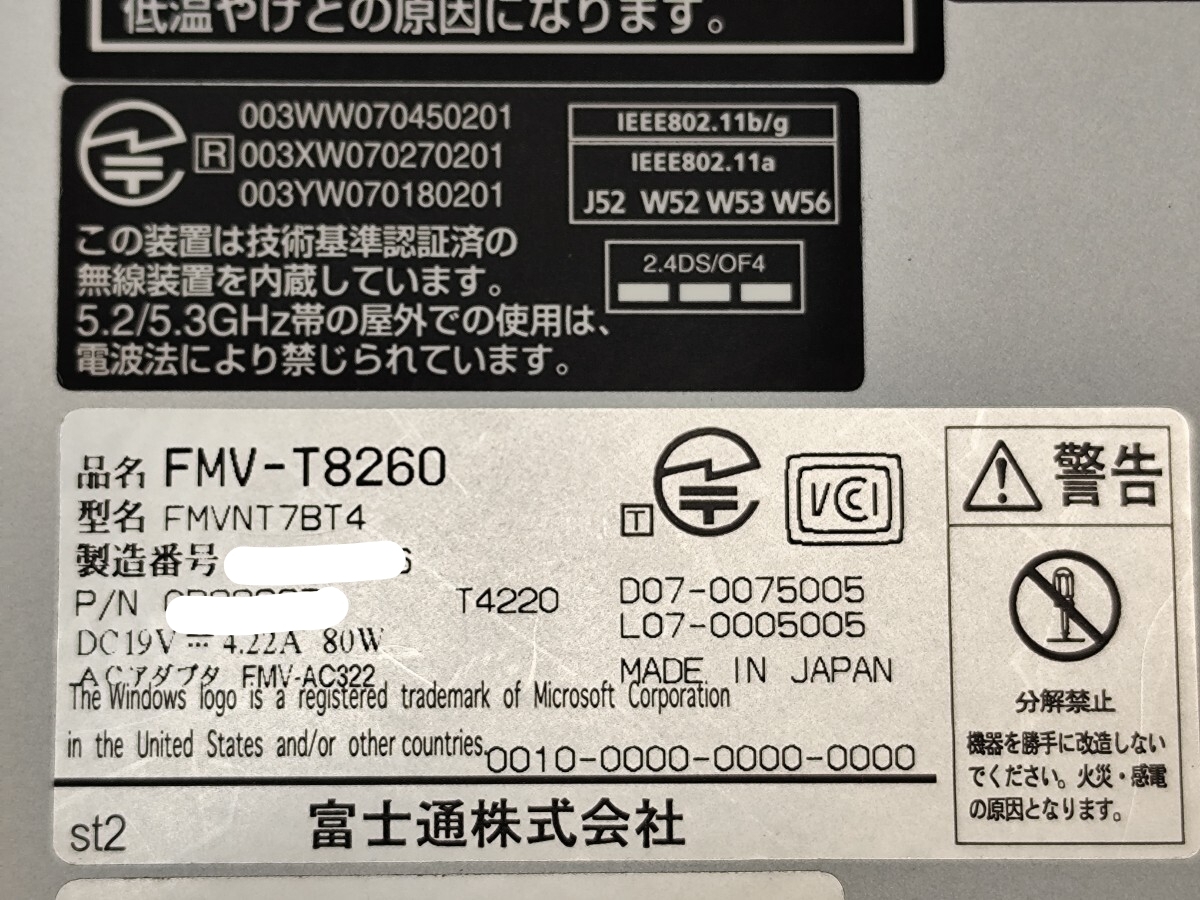 y1161 FUJITSU FMV-T8260 FMVNT7BT4 Core 2 Duo T8100 2GB ストレージ無 ジャンク
