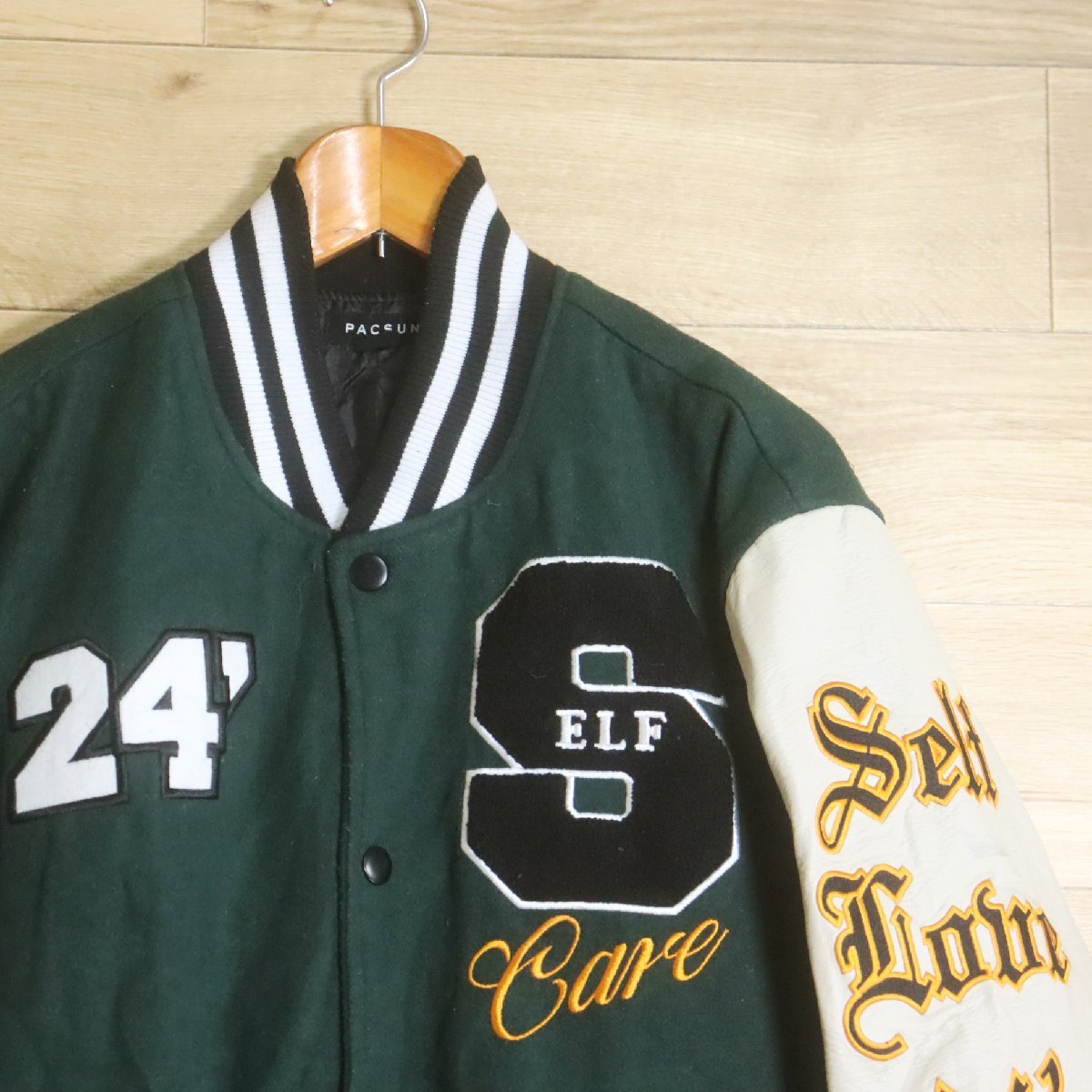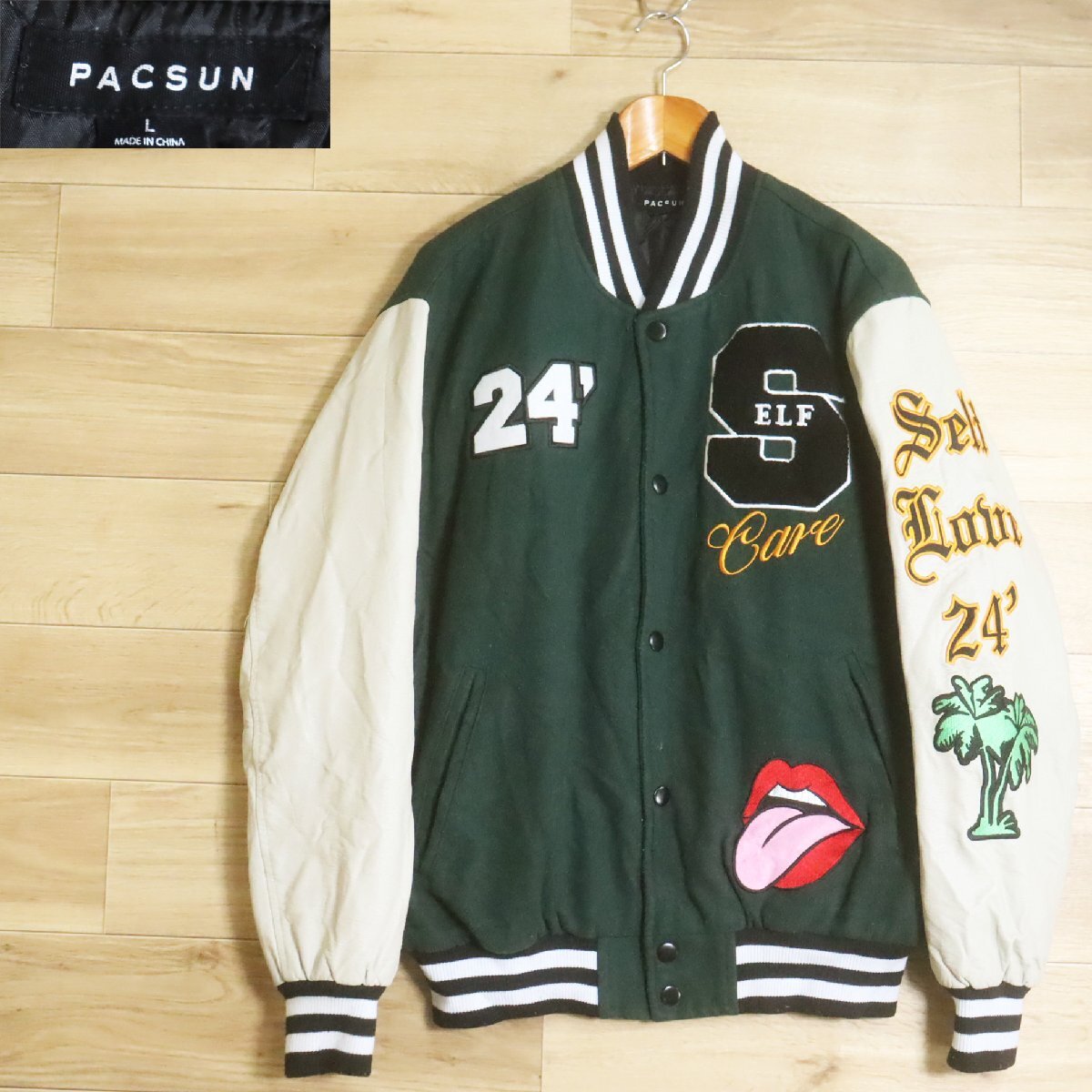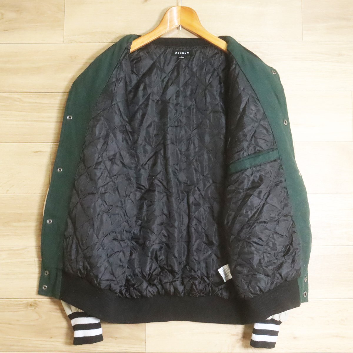 Z3S/R7.17-1 PACSUN フェイクレザー 袖革スタジャン バーシティジャケット 裏キルティング 刺繍 ワッペン L ジャンパー ブルゾン