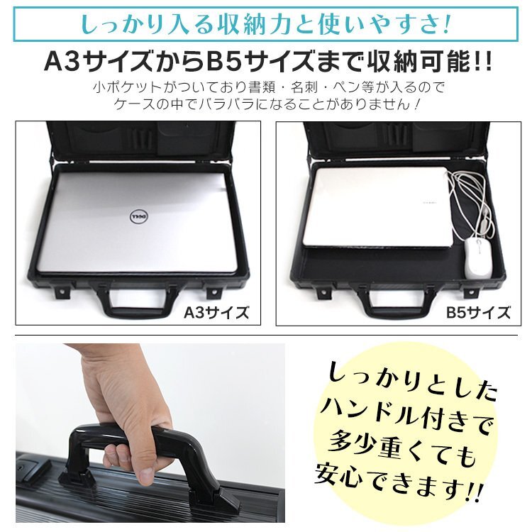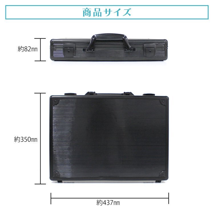 軽量で頑丈、抜群の容量を誇るアルミアタッシュケース。 シンプルなデザインと軽量で丈夫なボディでシーンを選ばず大活躍! ポケットも充実たっぷり収納。 盗難防止用の鍵も付いていて、出張など長時間の移動にもしっかり対応します。 ノートPC・書類・メディア・貴重品の収納等、多彩な用途にご利用頂けます! ●仕様 サイズ(約): ・外寸:437X350X82mm ・内寸:426×309×46mm 重量(約)1.8Kg 材質:アルミニウム合金、PVC、ABS樹脂他 ●注意事項 ※本体にアルミ素材・MDF素材を使用している為、内張りを接着で固定しています。輸送中の振動などにより多少接着面が浮いてしまう事がございます。軽く手で押さえられると接着力を回復できますので、予めご了承願います。 ※アルミニウム合金はフレームのみでパネル面は使用しておりません。 ▼アタッシュケース カラー一覧▼ ■ ブラック ■ シルバー |