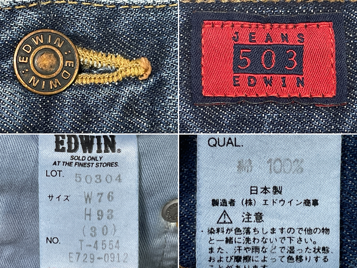 ブランド:エドウィン 型 番 :50304 カラー :インディゴ 状 態 :USED エドウィン 503Z レギュラーストレート デニムパンツ です。 エドウィンの定番デニム 503 の ジツプフライバージョン です。日本人の体形に合わせ作られた、履き心地が良いデニムです。 色残り良く、ダメージ無くキレイな状態です。お探しの方お勧めの1本です。 ■サイズ:製品表記 W30 ■サイズ:実寸(平置き) ウエスト 37.0cm (×2=約74cm) 股下 74.5cm 股上 28.5cm ワタリ 30.5cm すそ幅 22.0cm | ||