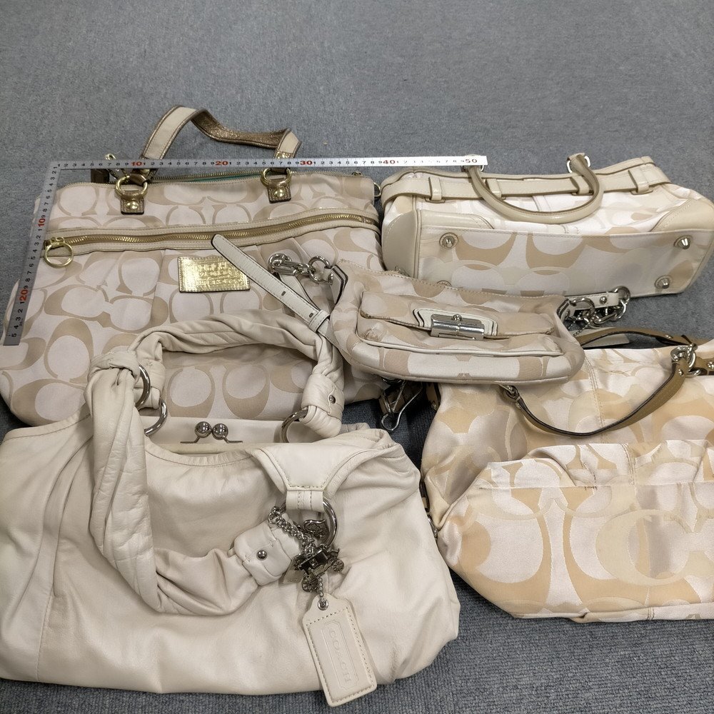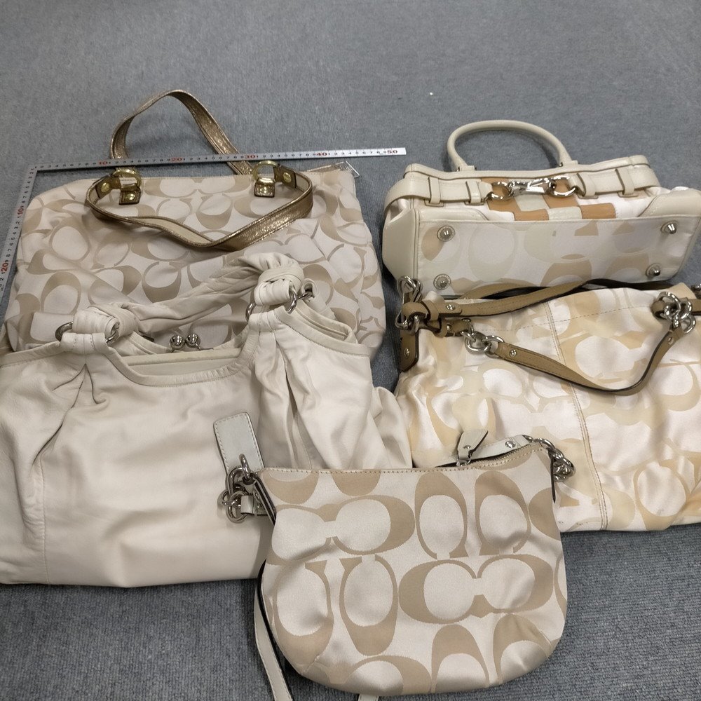 【5点セット】COACH コーチ バッグ シグネチャー ホワイト ベージュ系 トート ハンド 5150166