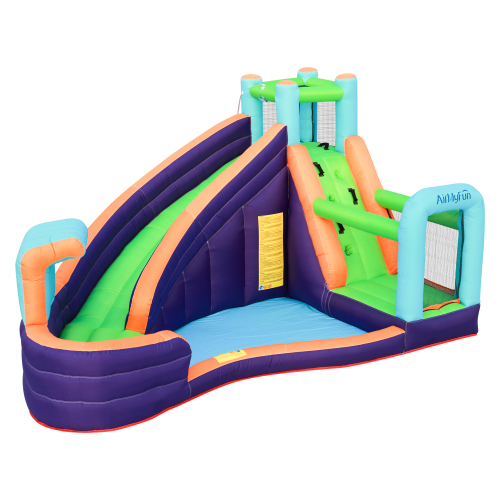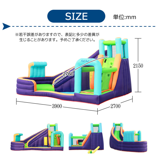 • 【これ一台でたっぷり遊べて大満足】①ウォータースライダー—— 長さと横幅を贅沢に設けてのびのびと!水を流してウォータースライダーになります。 ②広い浅めのプール—— すべり降りた先には広々としたプール。 プールに慣れていない子でも安心です。 ボールをいれて——超ワイドボールプールに! お家の中に設置すれば、雨の日寒い日でも時間を気にせず遊べます。 ③ふかふかのトランポリンゾーン—— ジャンプしたり、寝っ転がったり、秘密基地にしても楽しめます! ④手足を使ってよじ登るステップ—— 足をズボッといれて登るステップ。腕や足の筋肉をたっぷり使うことができます。 アスレチックのようで達成感も! ⑤落下防止ネット付で安心して遊べる ——落下防止ネットがついているのでパパ・ママも安心