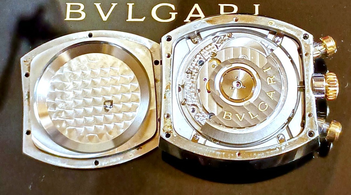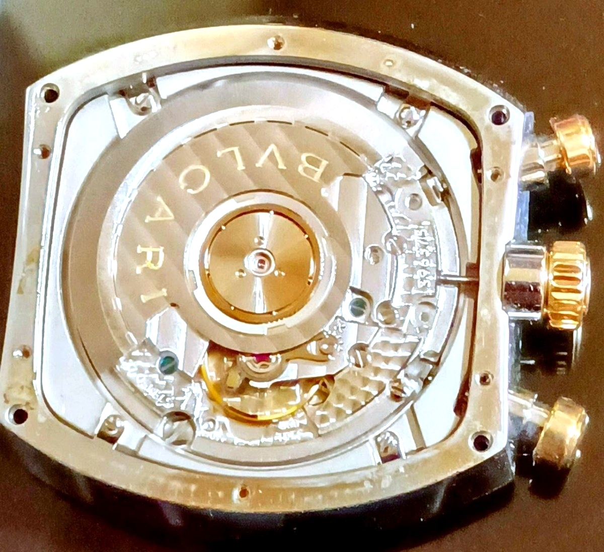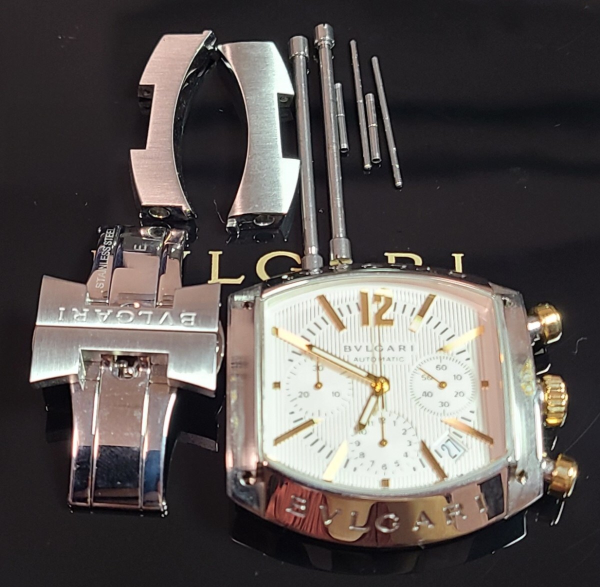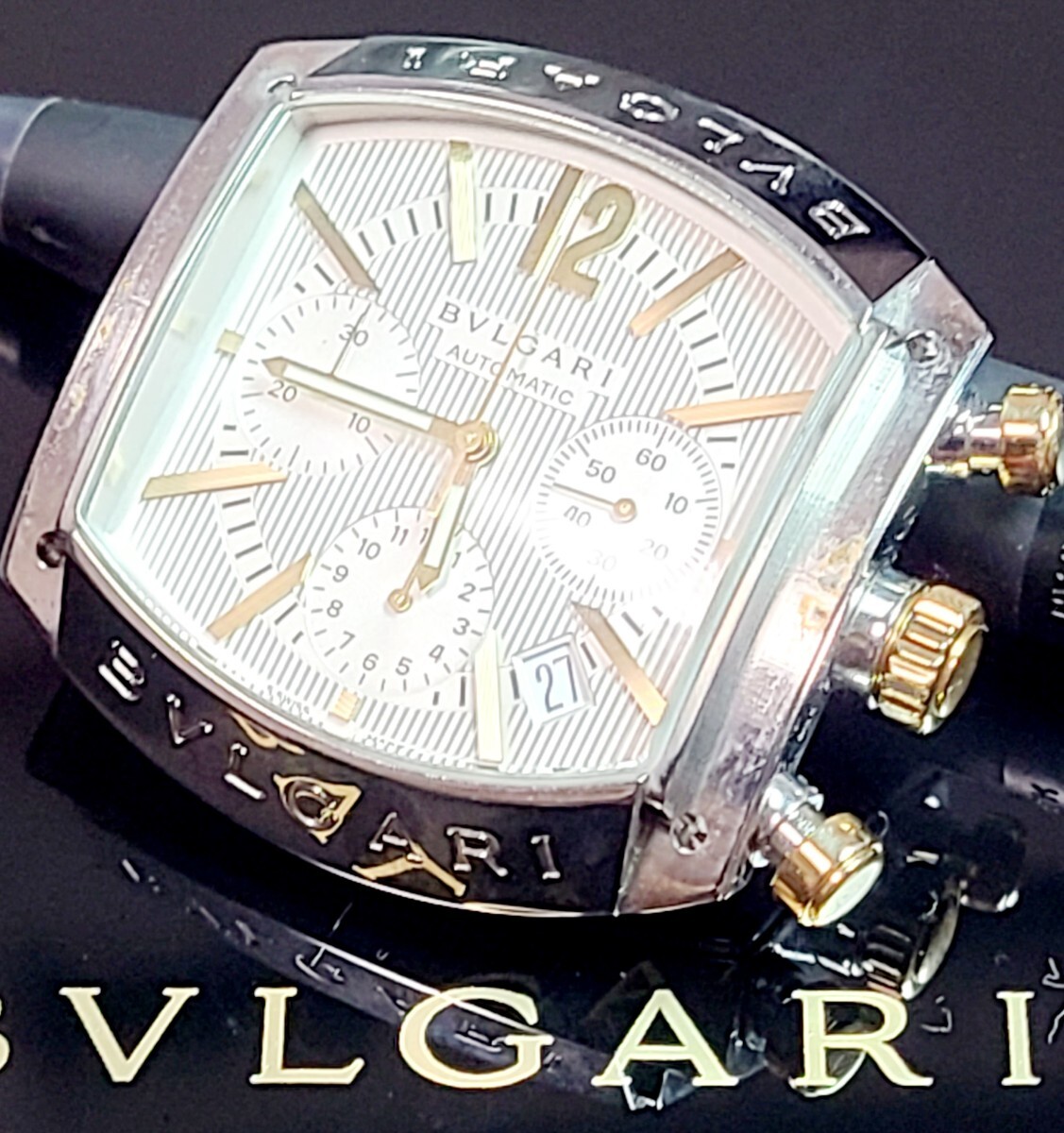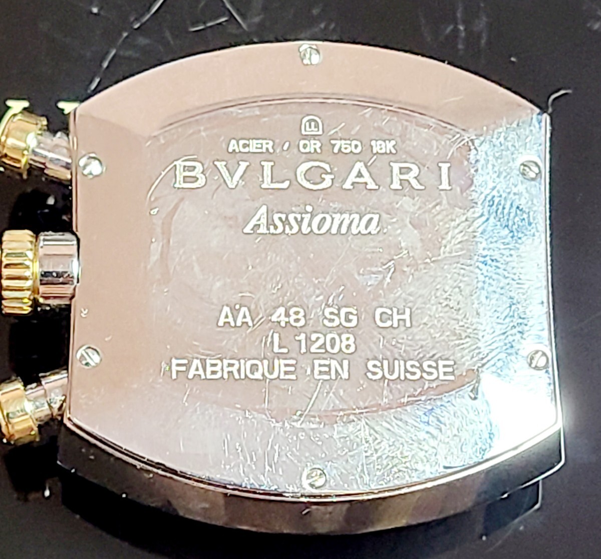 BVLGARI ブルガリ アショーマ Automatic AA48SGCH クロノグラフ デイト メンズ トップ パーツ 純正バックル リューズ 木箱付き.