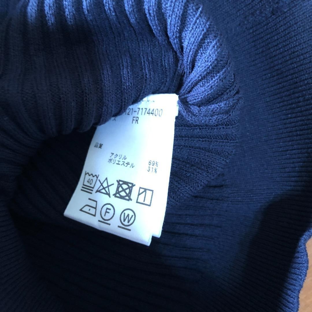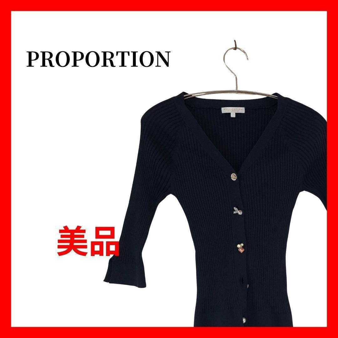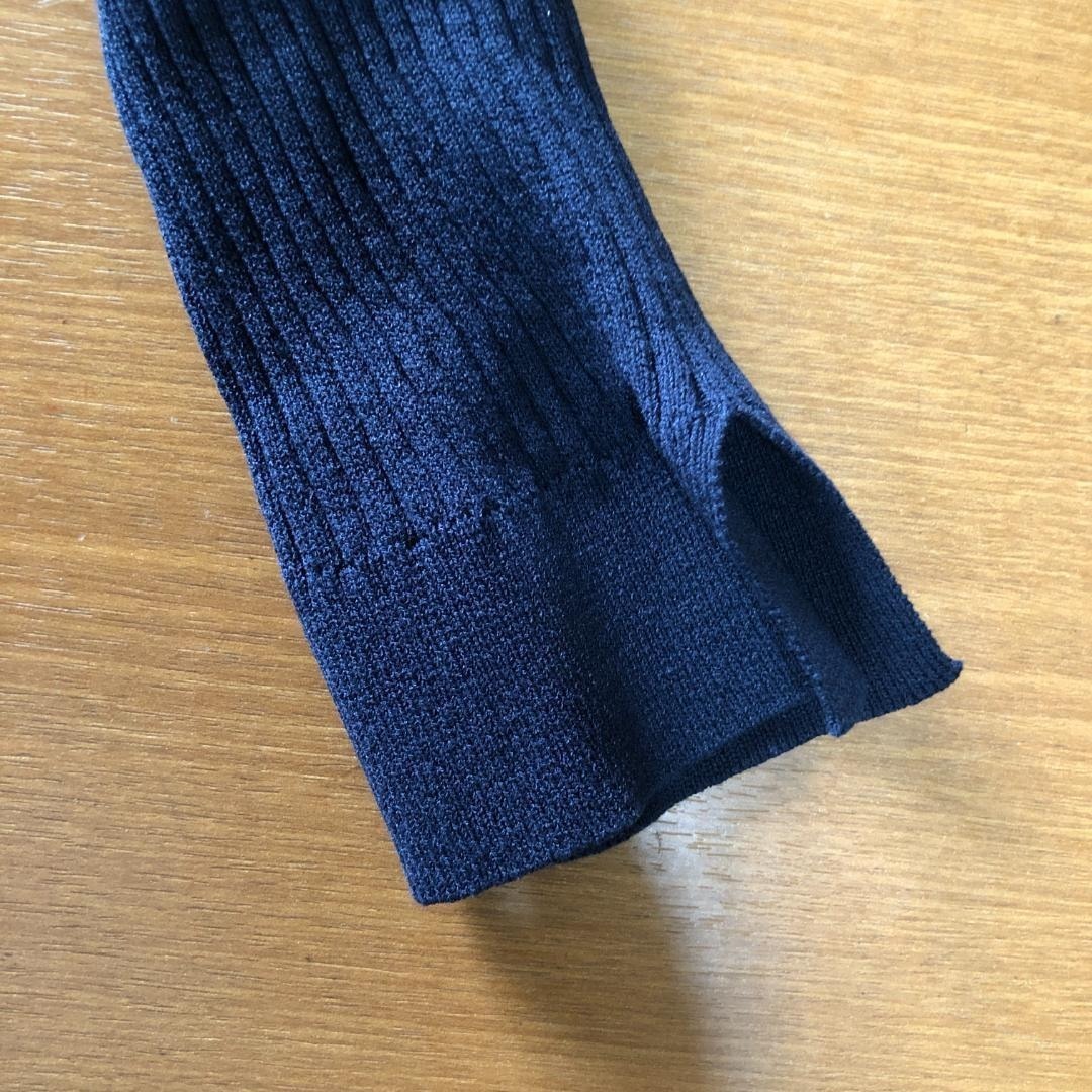 ビジューボタン リブニットカーディガン 7分袖 ネイビー トップス B2007