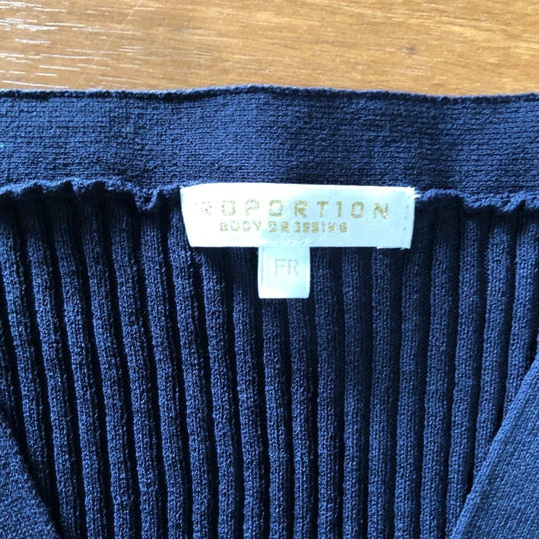 ネイビーのリブニット素材が体のラインをきれいに見せてくれる、Vネックカーディガンです。