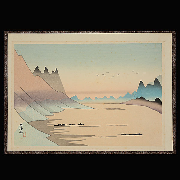 221【真作】坂本繁二郎 阿蘇五景 南郷谷 木版画 1枚/洋画家 福岡県生 文化勲章受章 八女市名誉市民