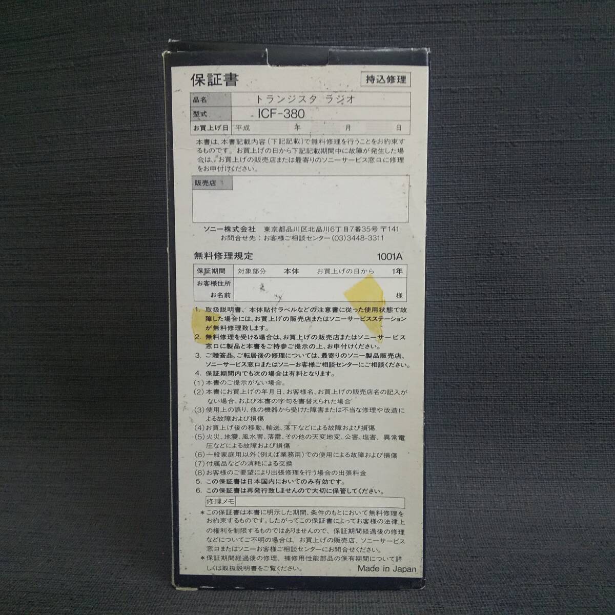 ◆SONY ソニー ICF-380 ブラック FM/AMレシーバー ポータブルラジオ 本体未開封 長期保管品◆E31003