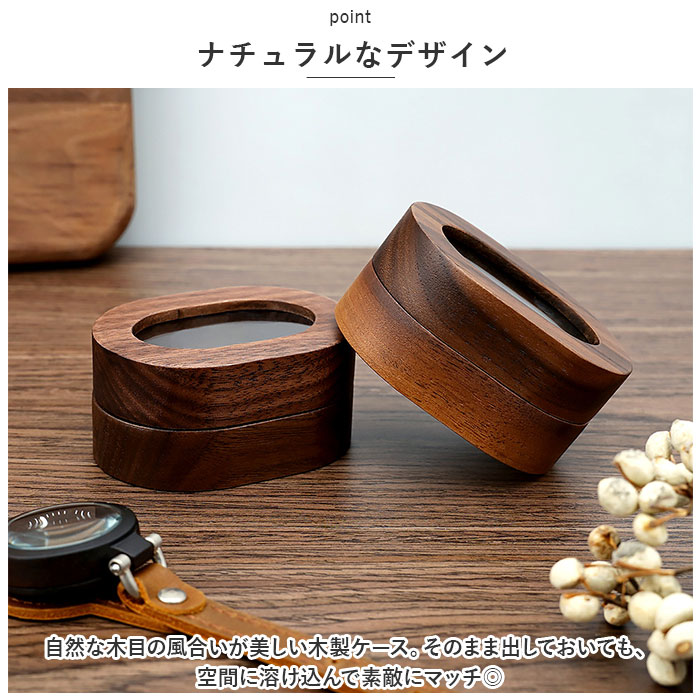 商品説明 | ・・大切な指輪をおしゃれに収納できる♪木製リングケースが登場。 ・【ナチュラルなデザイン】 ・自然な木目の風合いが美しい木製ケース。そのまま出しておいても、空間に溶け込んで素敵にマッチ◎ ・【ワンタッチ開閉】 ・開口部にはマグネットが内蔵されており、簡単にオープン。ピタッと閉まって、中身のこぼれ落ちをガード。 ・【ペアリングを1つに収納】 ・・2本の指輪を収納できるから、ご夫婦やカップルで一緒に使えるのが嬉しい♪リングスロットは、指輪を優しく保護する起毛素材。 ・【選べるデザイン&カラー】 ・中身を隠せるベーシックデザインや、外側からもお気に入りの指輪が見えるクリア窓デザイン。リングスロットのカラーもお好みでチョイス! |