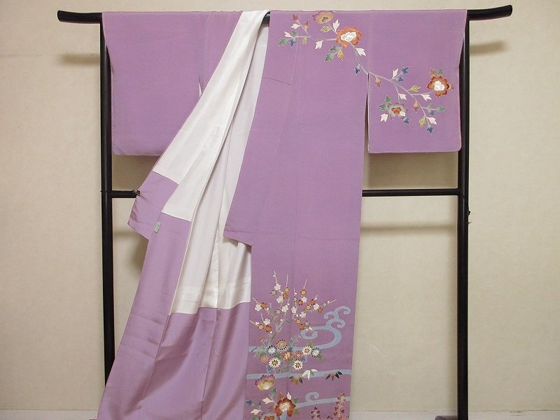 表地:正絹 胴裏:正絹 八掛:正絹 袷、広衿仕立て |