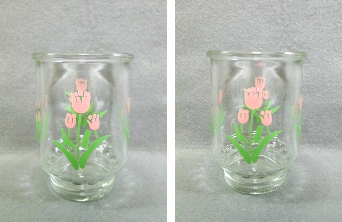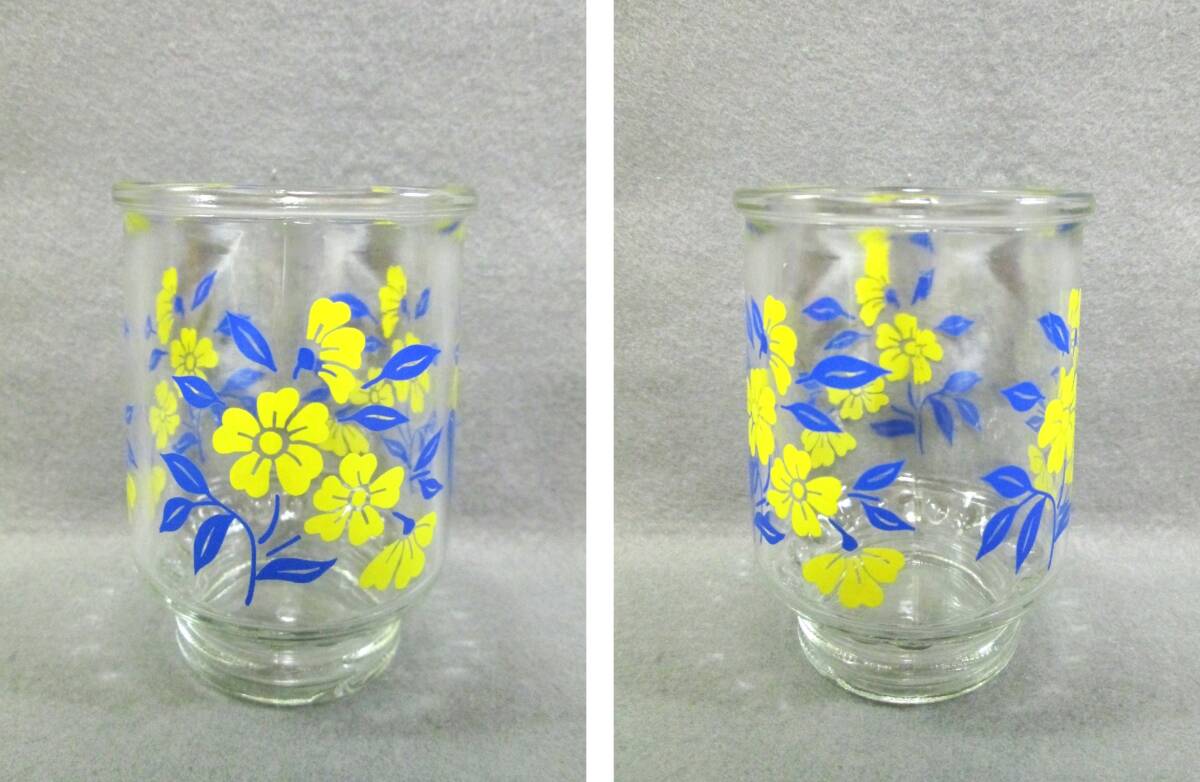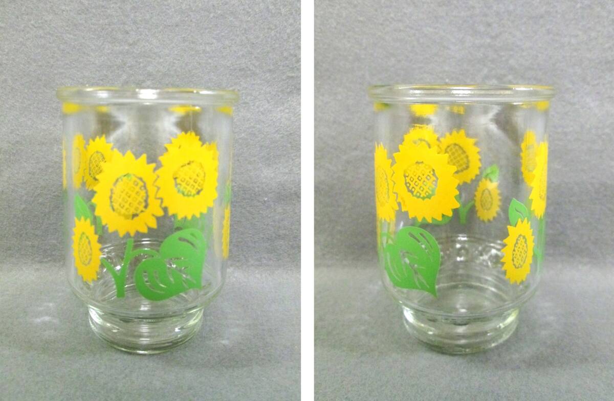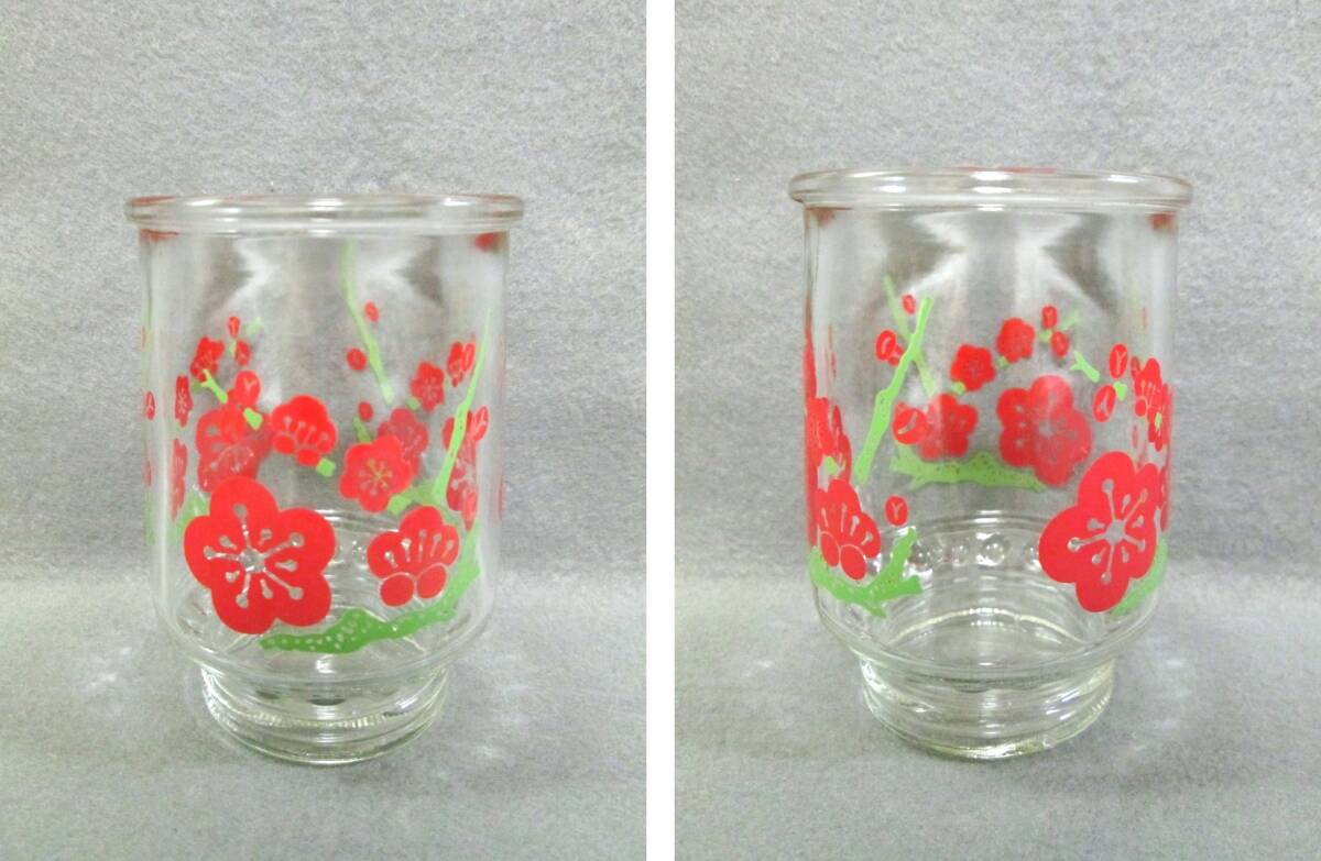 昭和レトロ ワンカップ ガラス コップ 4個セット 花柄 梅の花 チューリップ ひまわり 硝子 グラス ②