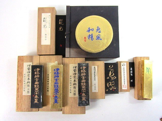 C589 ほとんど未使用 日本製 墨 8点 書道具 総重量:655.5g【説明欄に詳細写真有り】