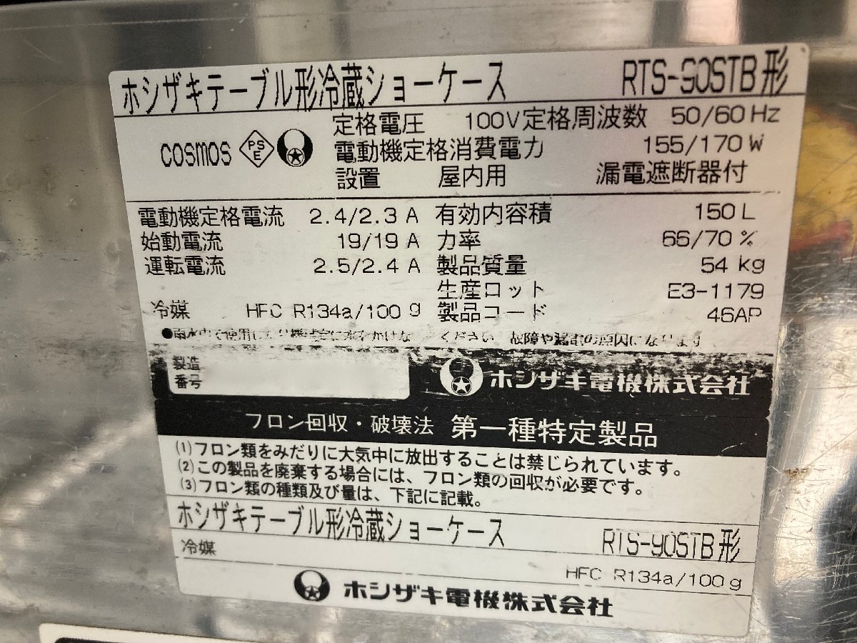 メーカー | ホシザキ 株式会社 | 品名と形式 | テーブル形冷蔵ショーケース RTS-90STB |