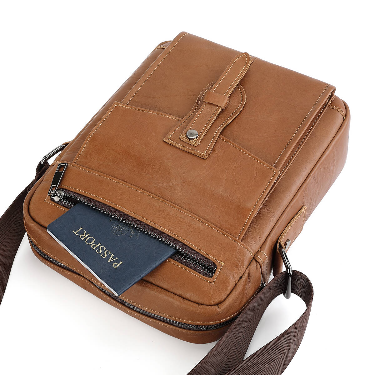 新品本革メンズバッグ斜めショルダーバッグ本革多機能バッグ牛革カジュアルメンズショルダーバッグ ブラウン