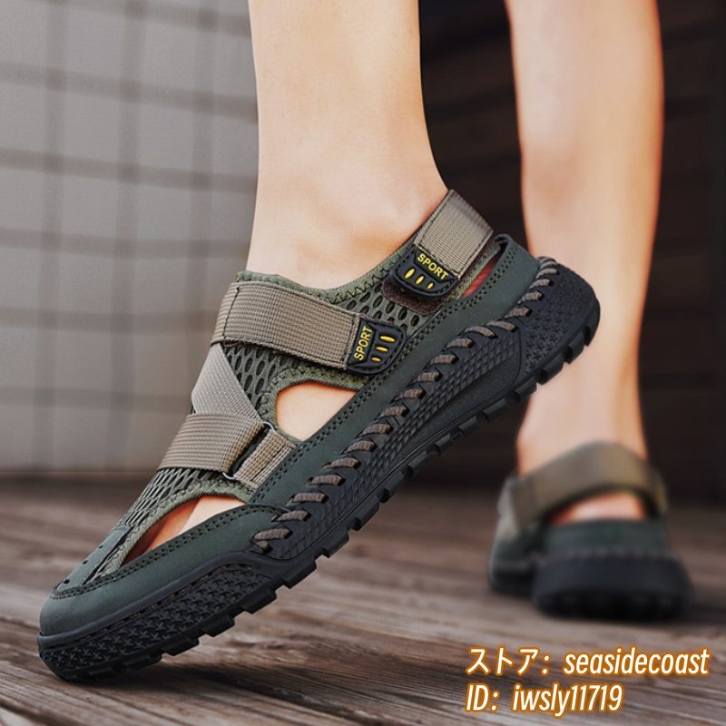 サンダル メンズ スポーツサンダル 通気性 メッシュ ビーチサンダル ウォーキングシューズ アウトドア 軽量 快適 幅広 グリーン 27.0cm