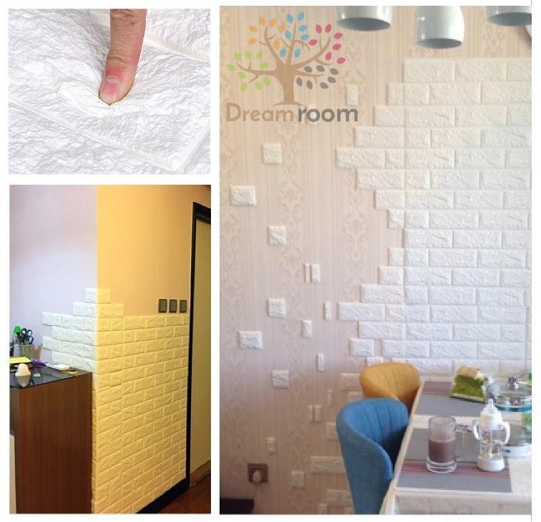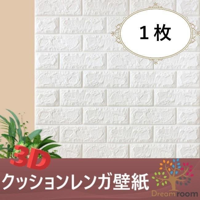 【1枚】高品質 3D クッション 壁紙シール ホワイト レンガ調 糊付き はがせる クロス 70×77cm アンティーク 耐水 抗菌 落書き 傷防止