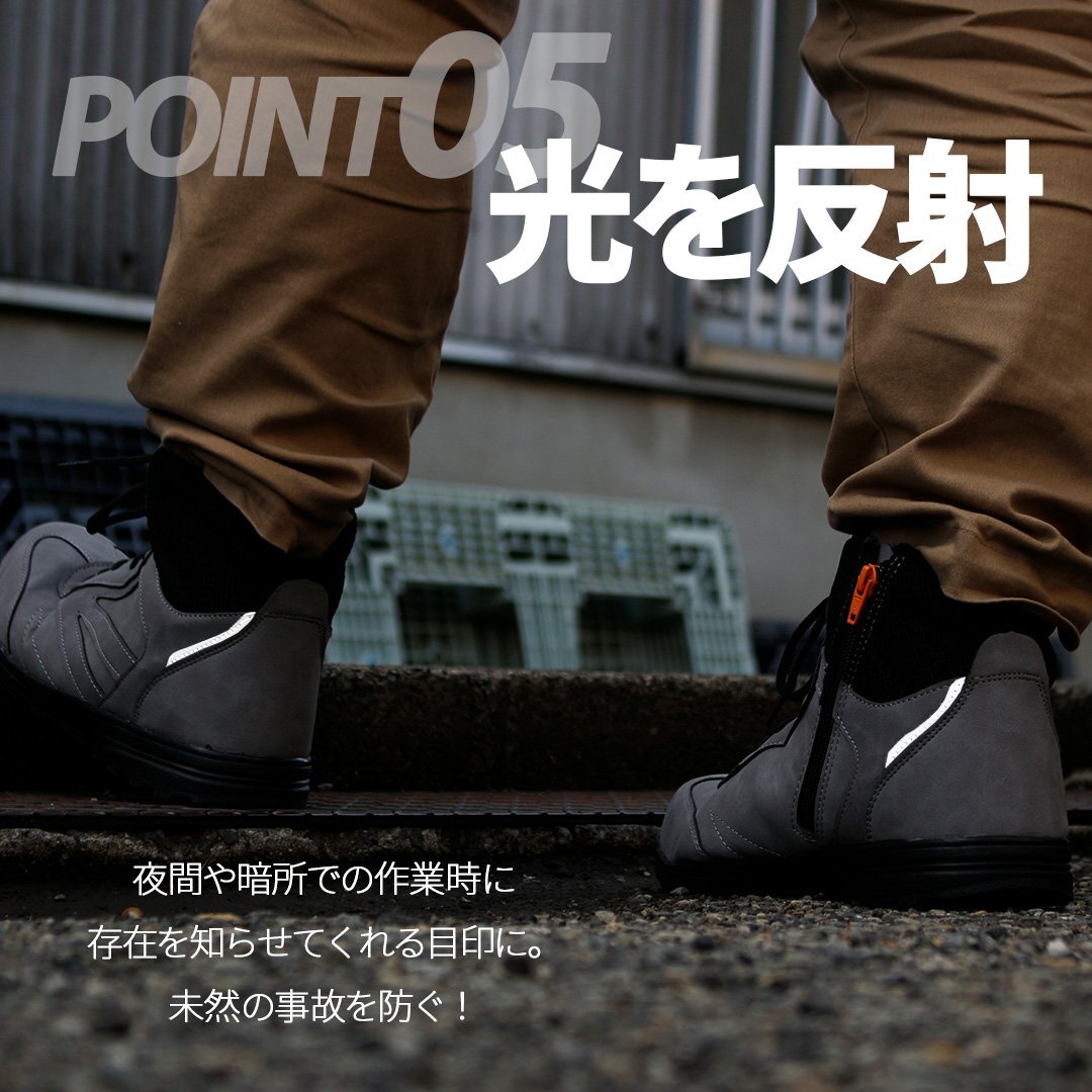 ・リフレクター搭載で、夜間や暗所での作業、運転中に存在を知らせてくれる。未然の事故を防ぐ。!