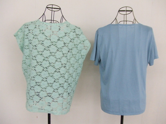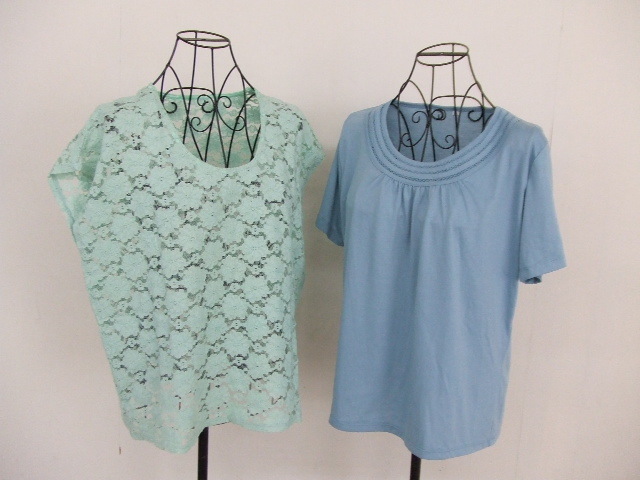 レディースカットソー2点セット ①Ehyphen world gallery/緑系・花柄 ②青系