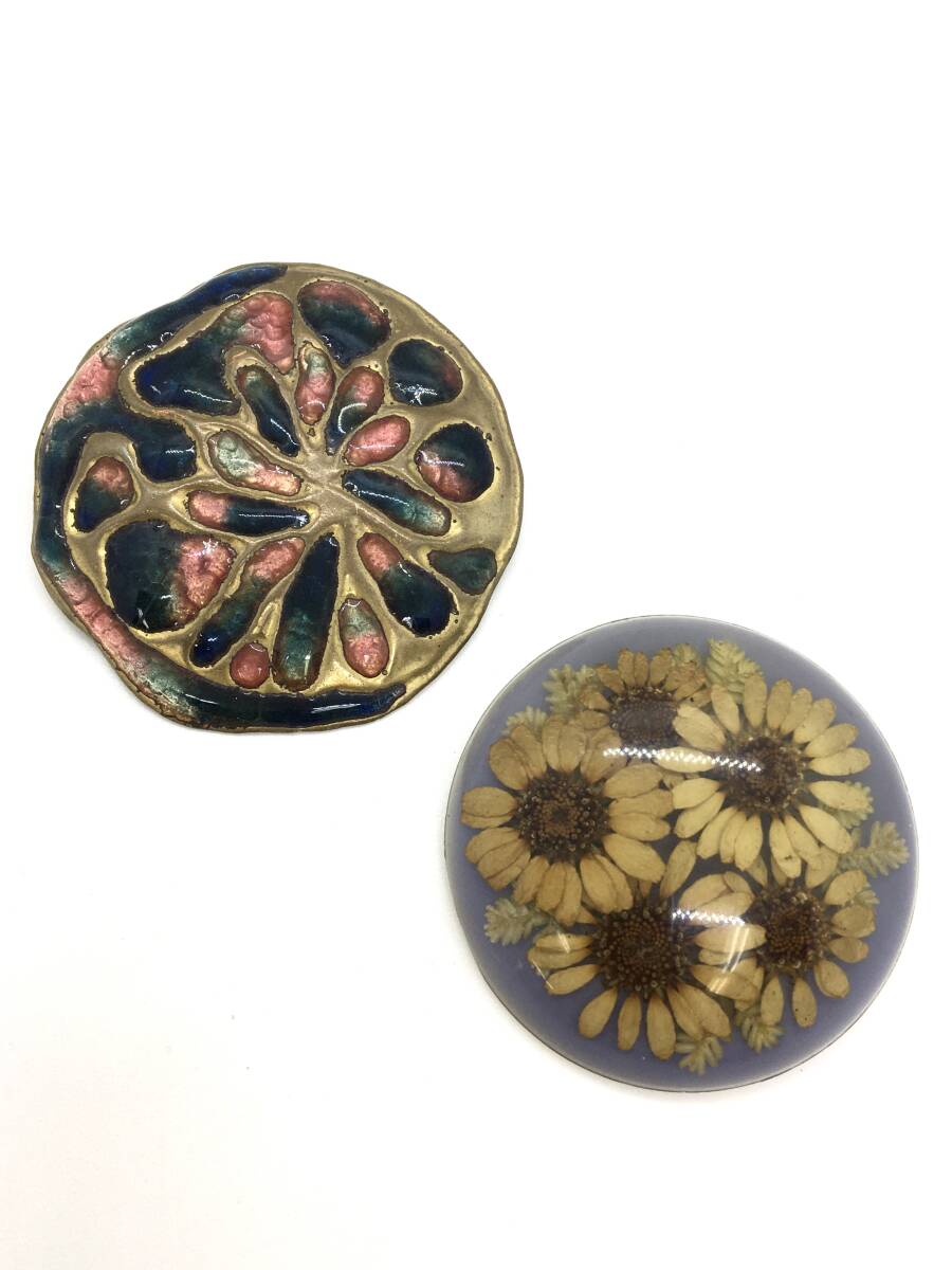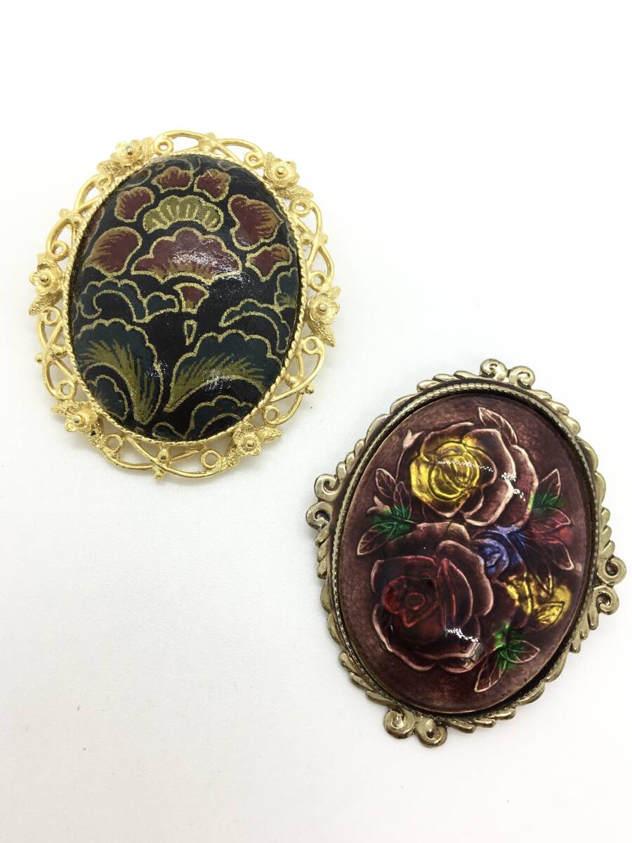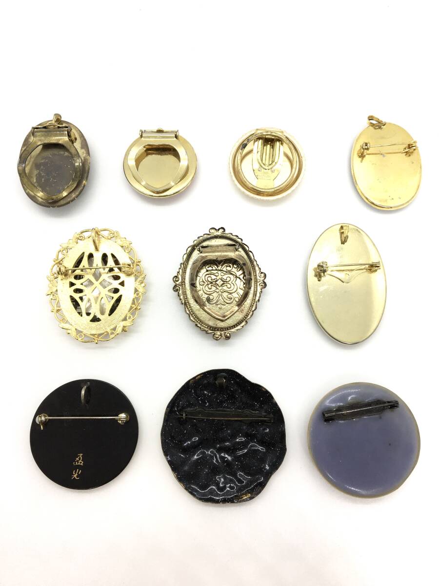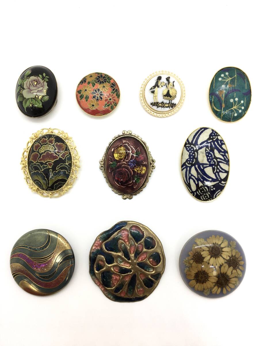 ◇1円◇ ブローチ まとめ10点セット ゴールド 花柄 薔薇 バラ ひまわり オーバル サークル 焼き物 レディース アクセサリー 冠婚葬祭