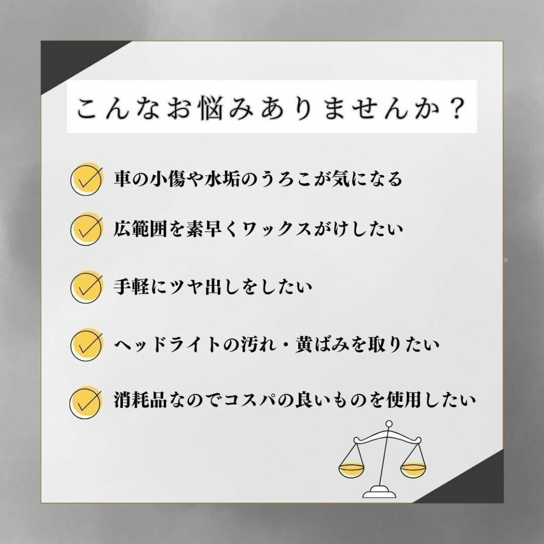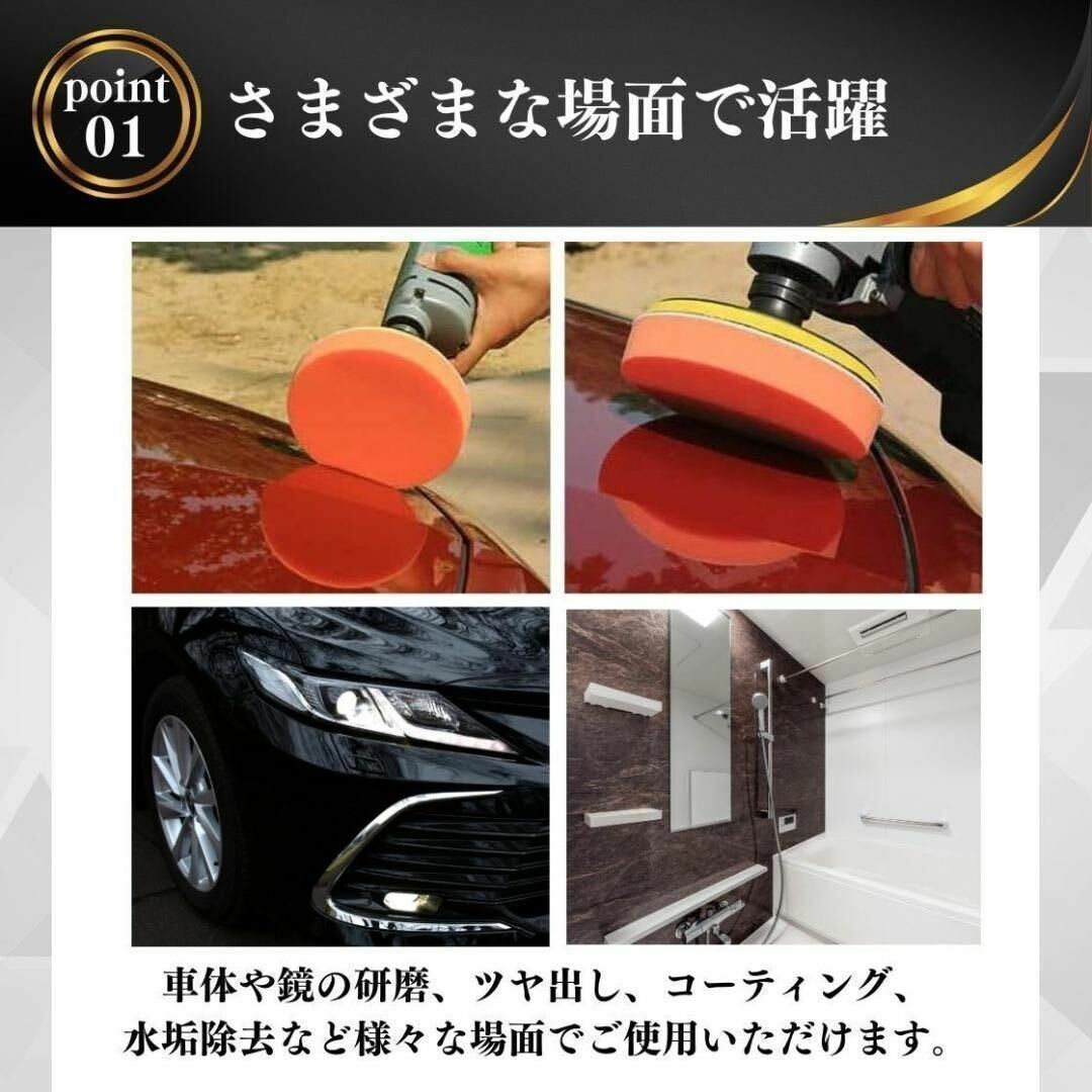 車体や鏡の研磨、ツヤ出し、コーティング、水垢除去など様々な場面でご使用いただけます。