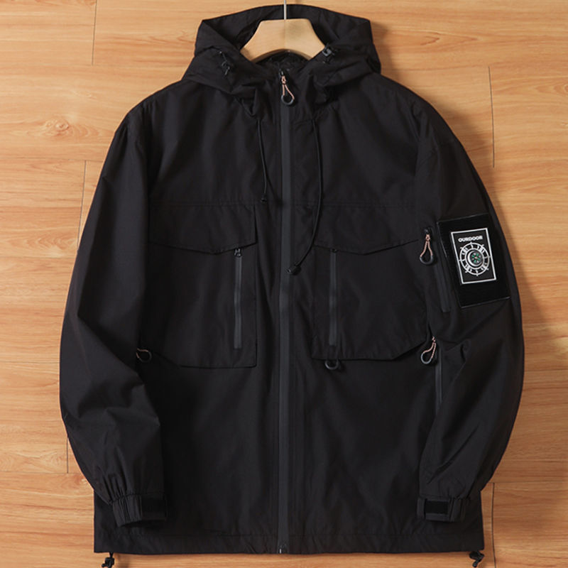 Y304-XL ブラック 新品 ジャケット マウンテンパーカー 秋 防寒 防風 通気 ストレッチ フード付き アウトドア アウター メンズ カジュアル