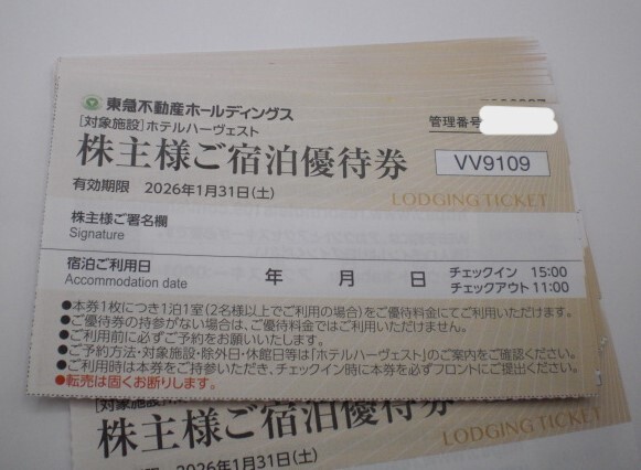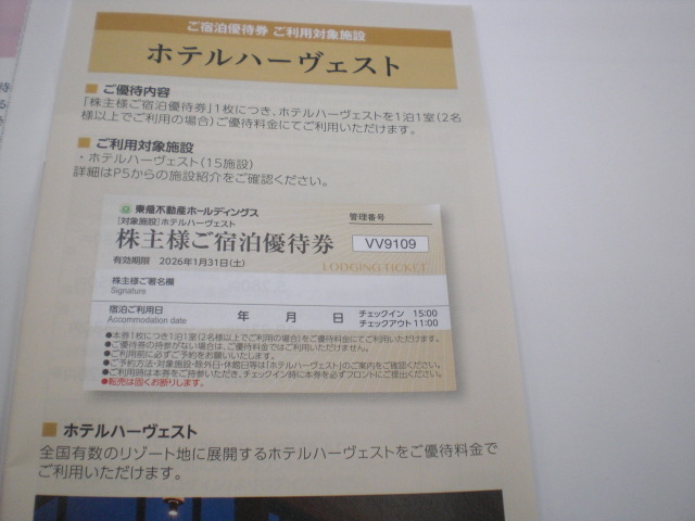東急不動産株主様御宿泊優待券1枚 ハーヴェストクラブ ハーベスト