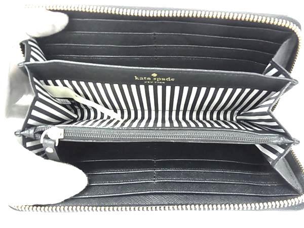 ■美品■ kate spade ケイトスペード レザー ラウンドファスナー 長財布 ウォレット 札入れ 小銭入れ レディース ブラック系 DG4930
