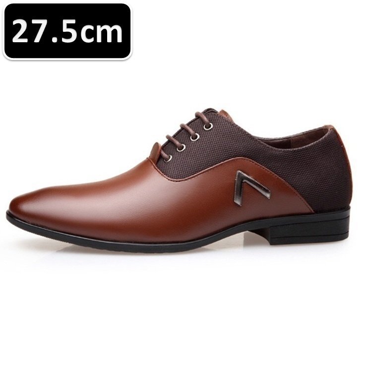 メンズ ビジネス レザー シューズ ブラウン サイズ 27.5cm 革靴 靴 カジュアル 屈曲性 通勤 軽量 柔らかい 新品 【205】