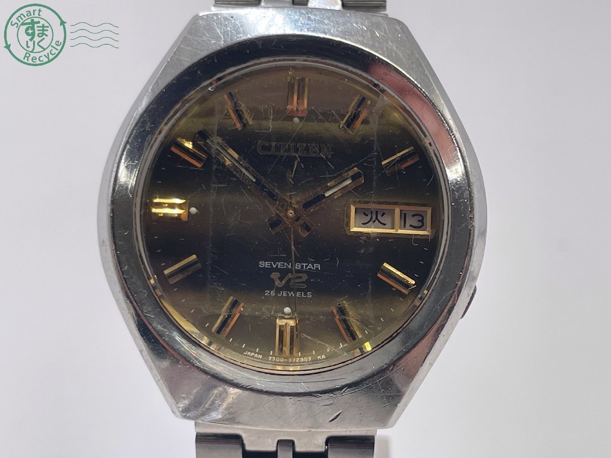 △CITIZEN シチズン セブンスター V2 4-771249 自動巻き アナログ ラウンド シルバー系 メンズ 腕時計 デイデイト 稼働 中古 | |||