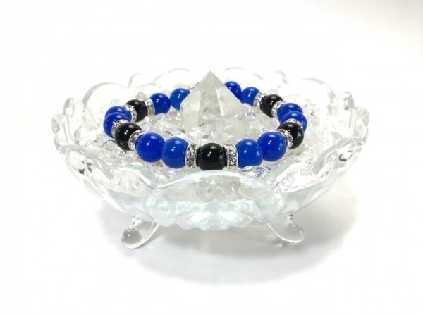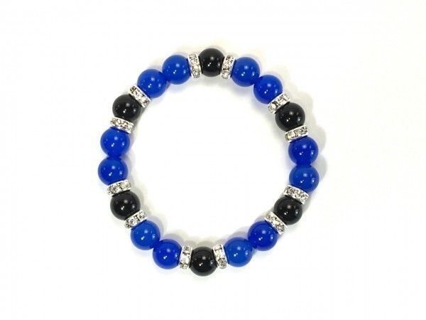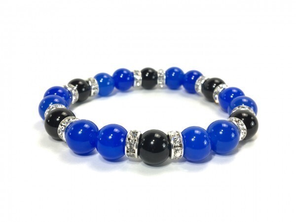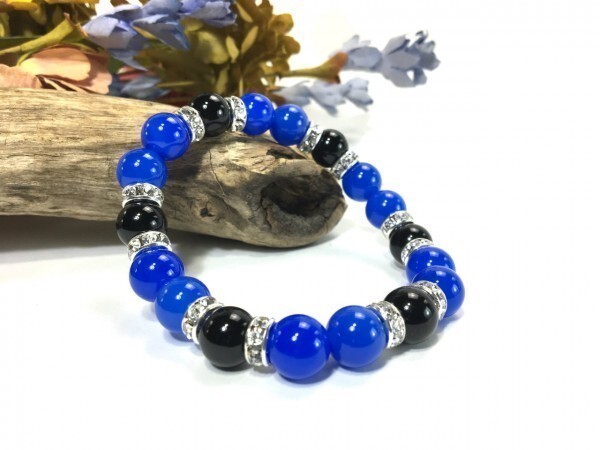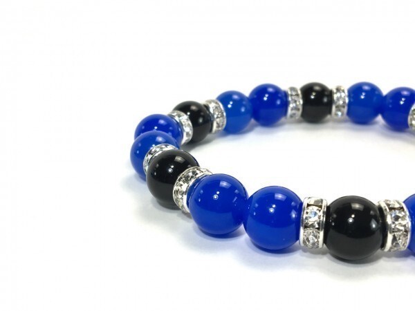 こちらは、ブルーメノウとオニキスを組み合わせたブレスレットです。間にはロンデルを挟み高級感あるデザインに仕上がっています。石大きさは腕にも馴染みやすいように10mm玉で内径約18cm(伸可能)です。数に限りがございますので気になる方はお早めにどうぞ。サイズ調節も可能ですのでサイズ調節の場合は取引ナビにてご一報くださいませ。(サイズ調節無料です)